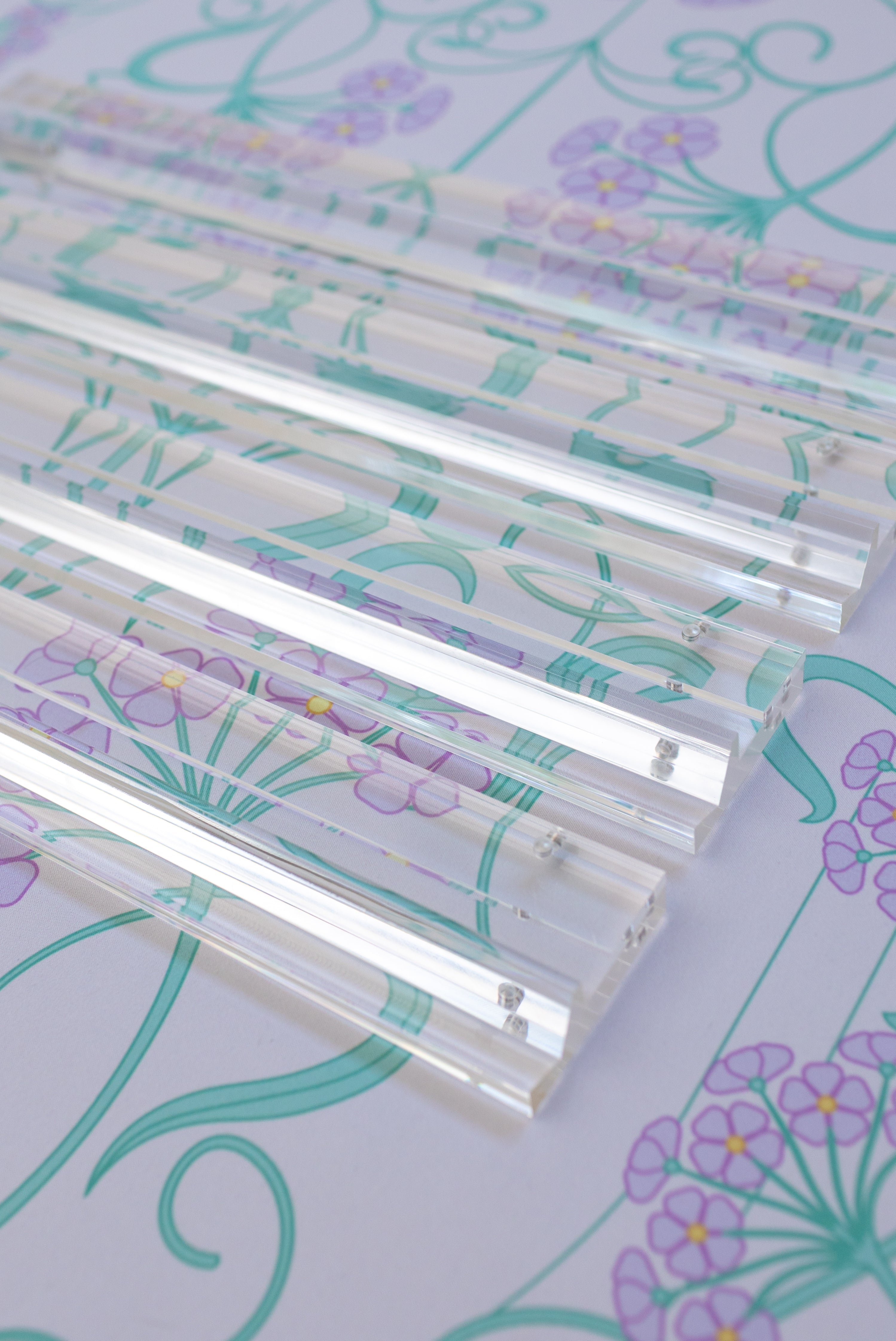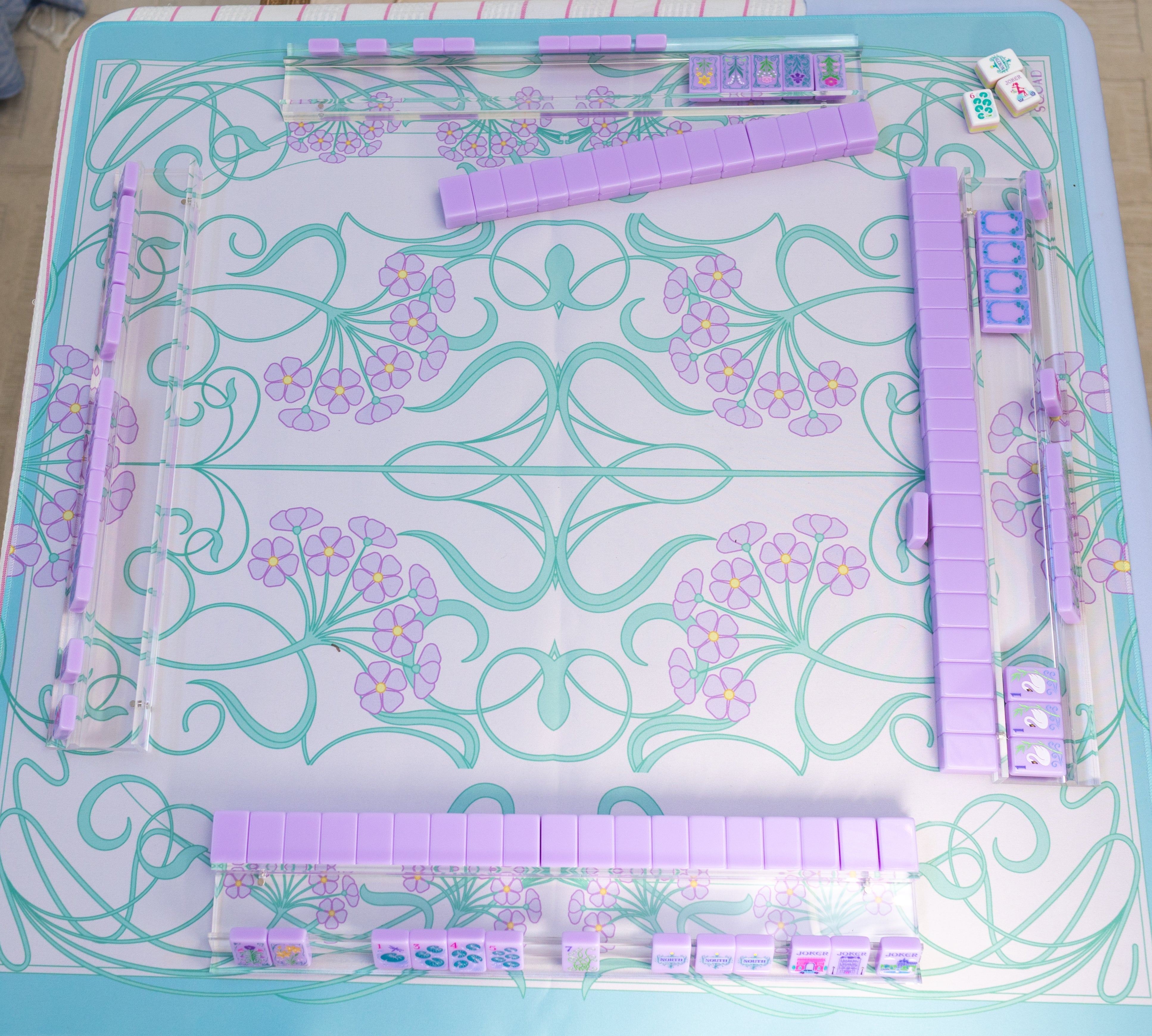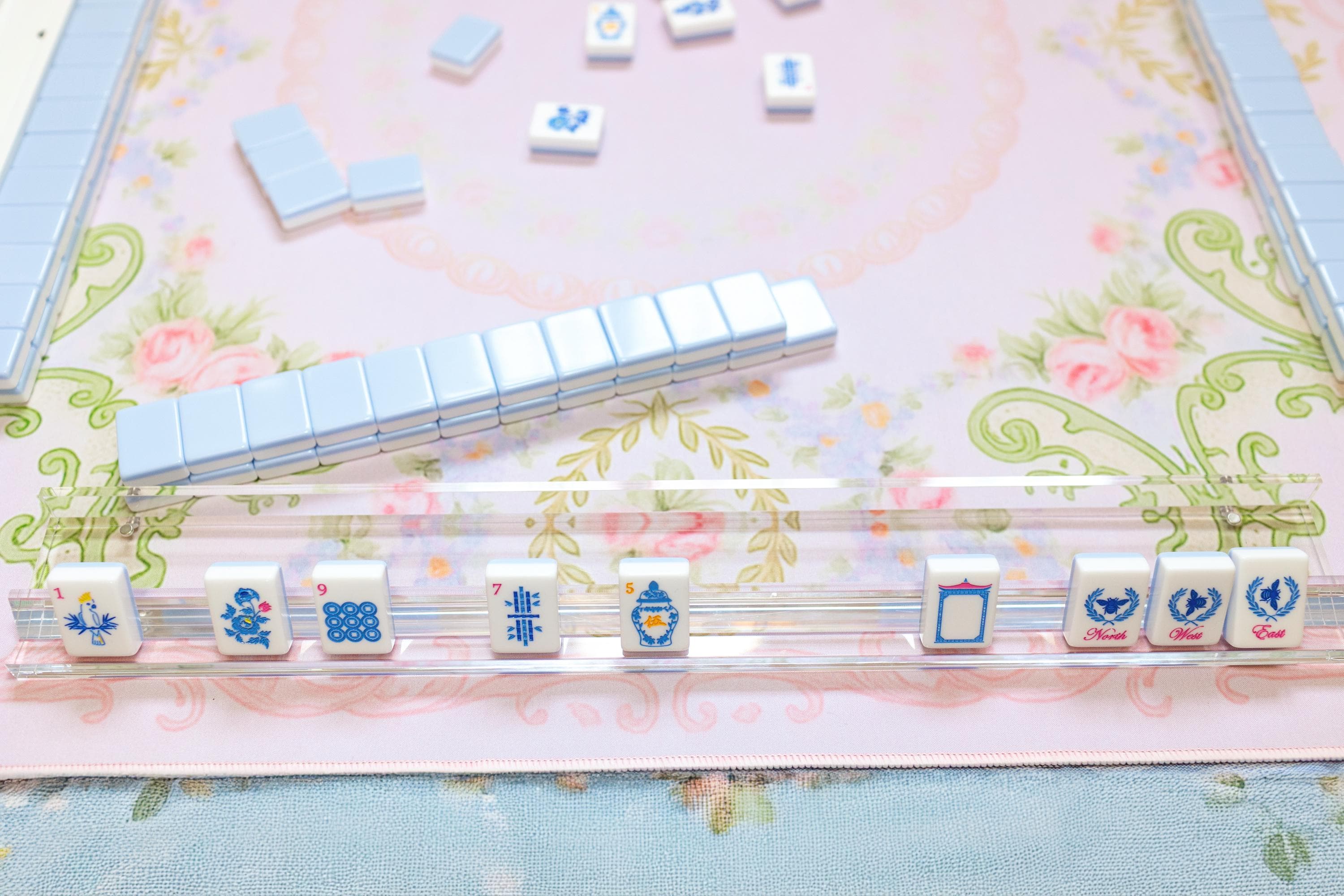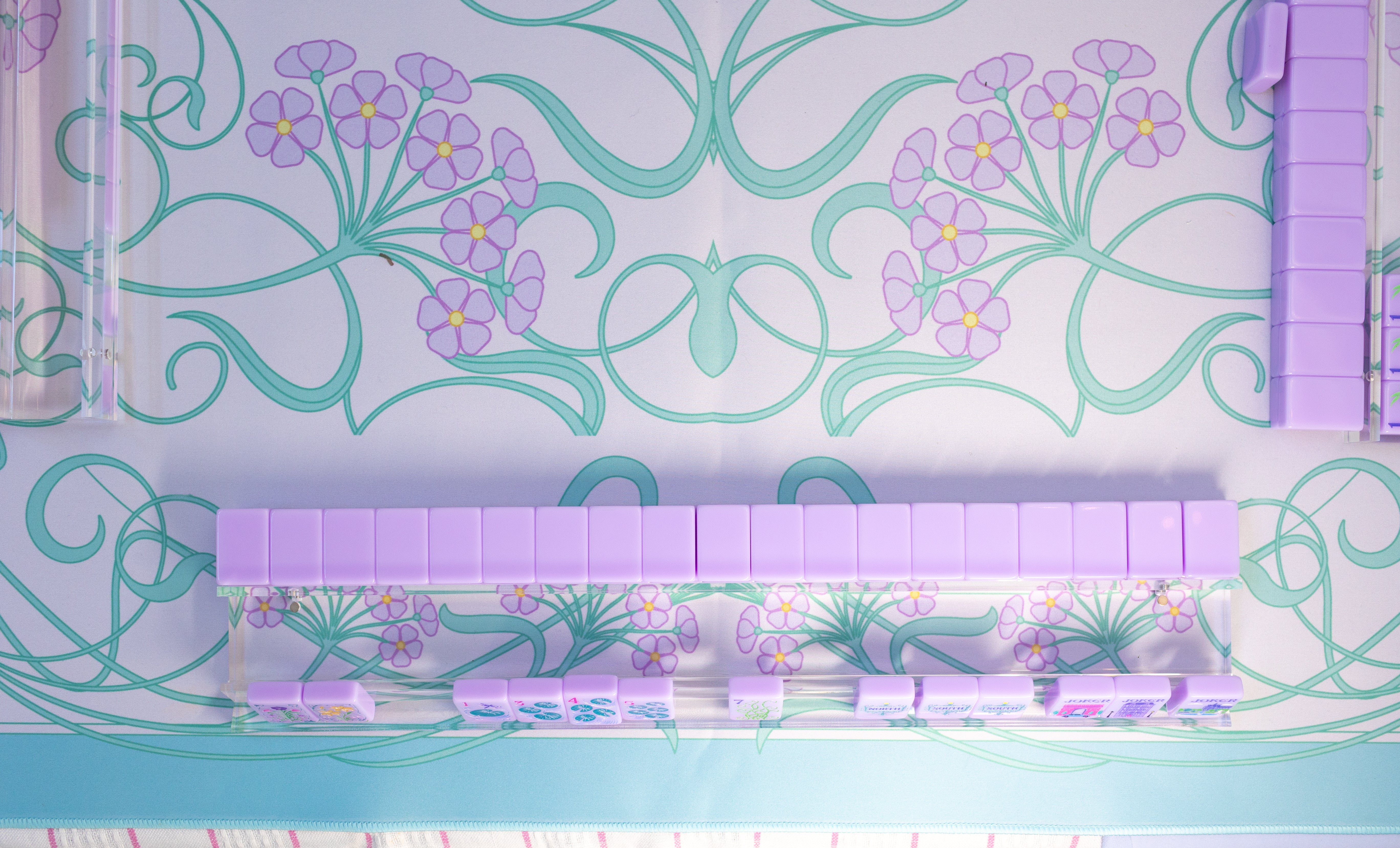 Their crystal-clear transparency lets your mahjong mat take center stage — think of them as the jewelry that complements the outfit. Whether your mat is pastel, tropical, Parisian, or coastal, these racks allow the design beneath to shine through with stunning clarity.