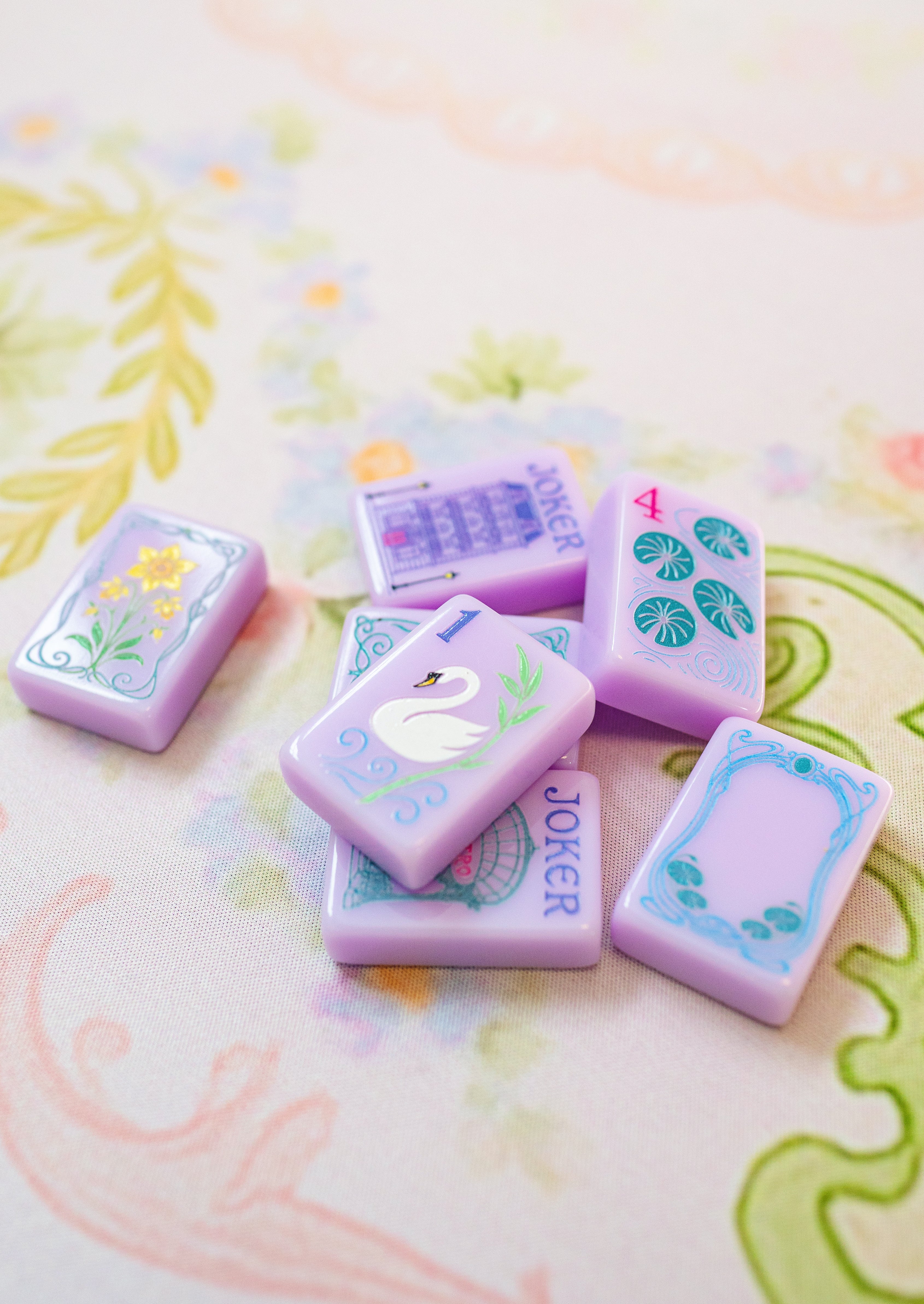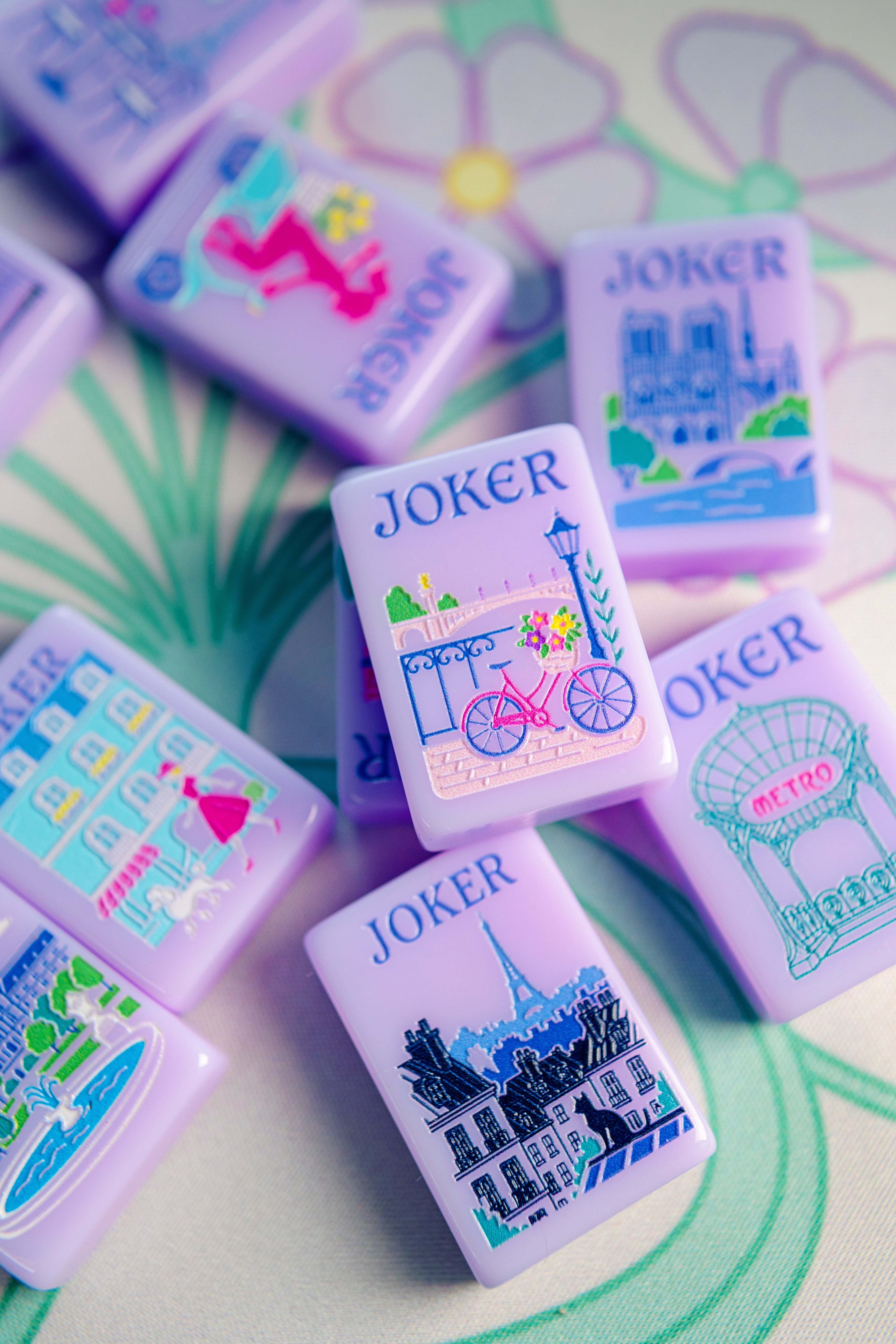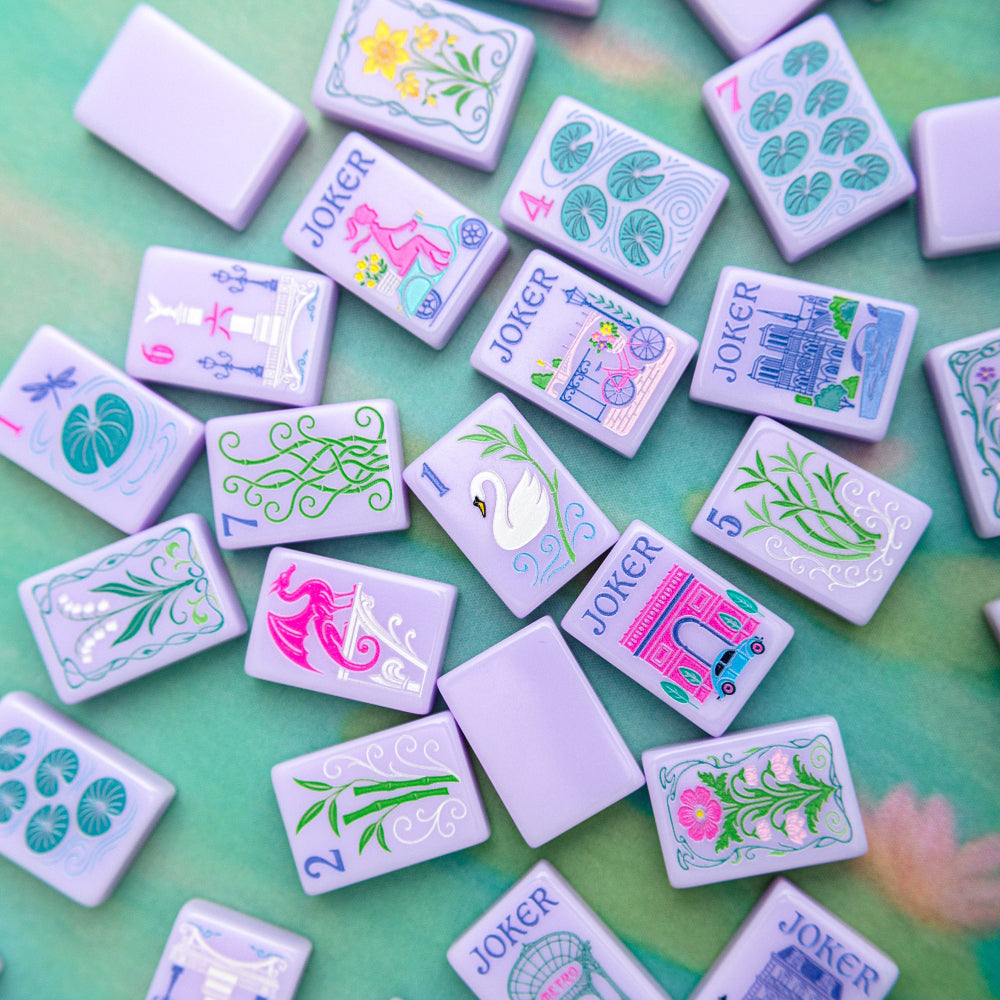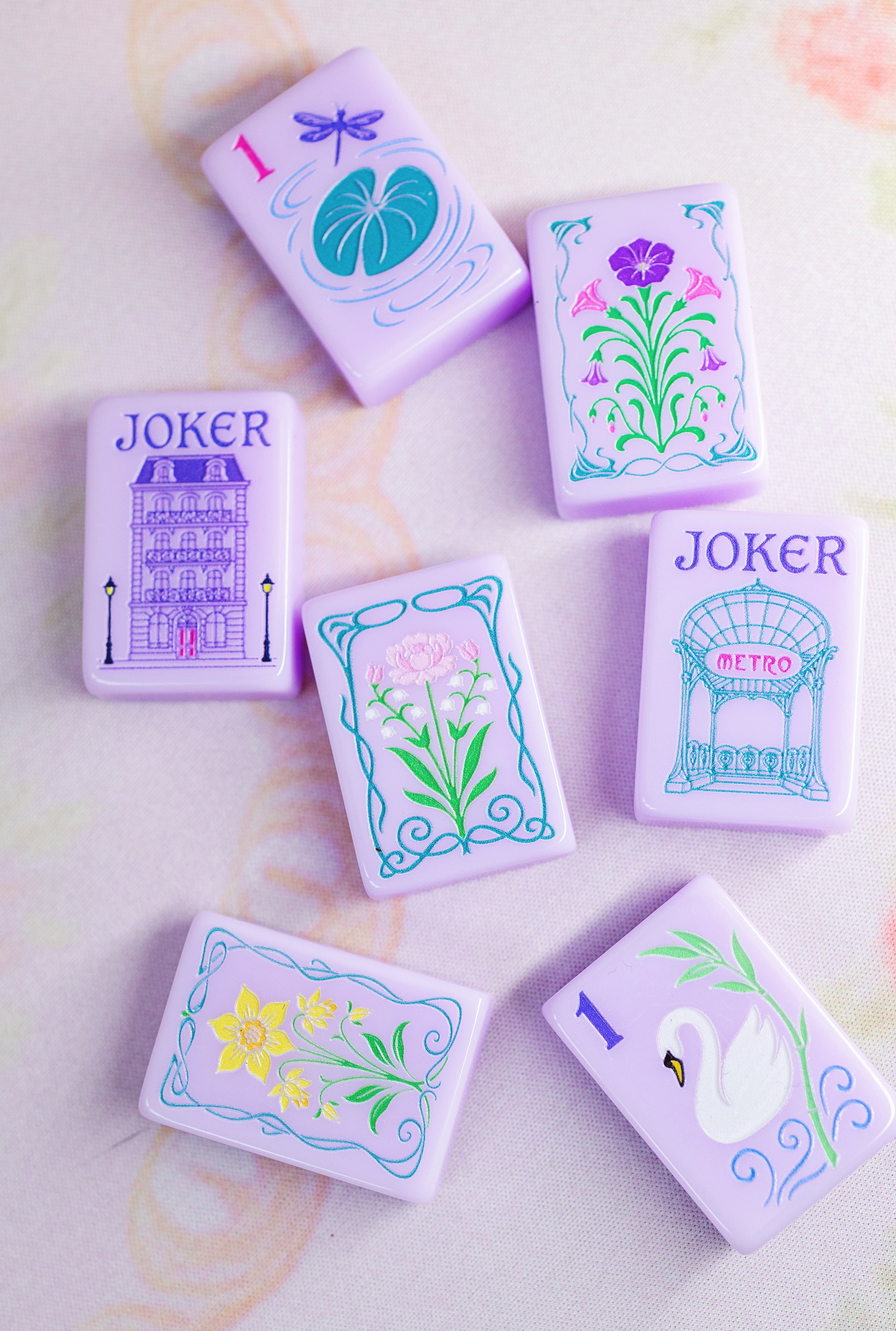 This mahjong set is a love letter to that experience. Paris is at once whimsical and organic, yet also elegant and refined—and the Art Nouveau style, which is woven throughout the city, became the foundation of my designs. Each suit carries those flowing lines, delicate flourishes, and soft lavender tones, making every tile feel like a tiny piece of Paris.