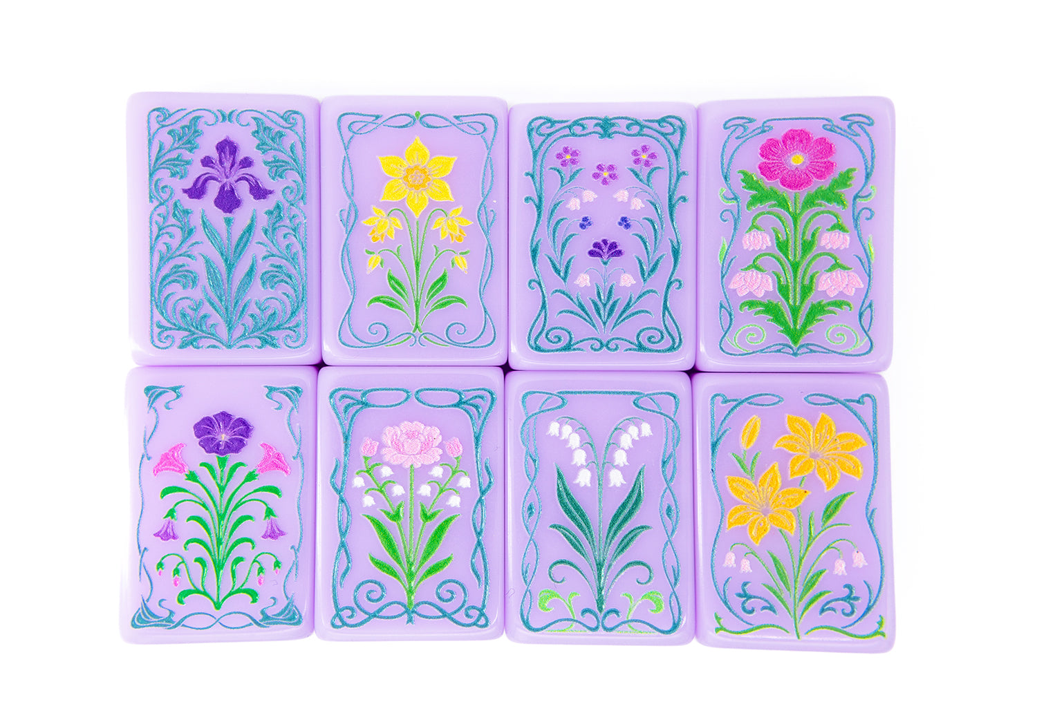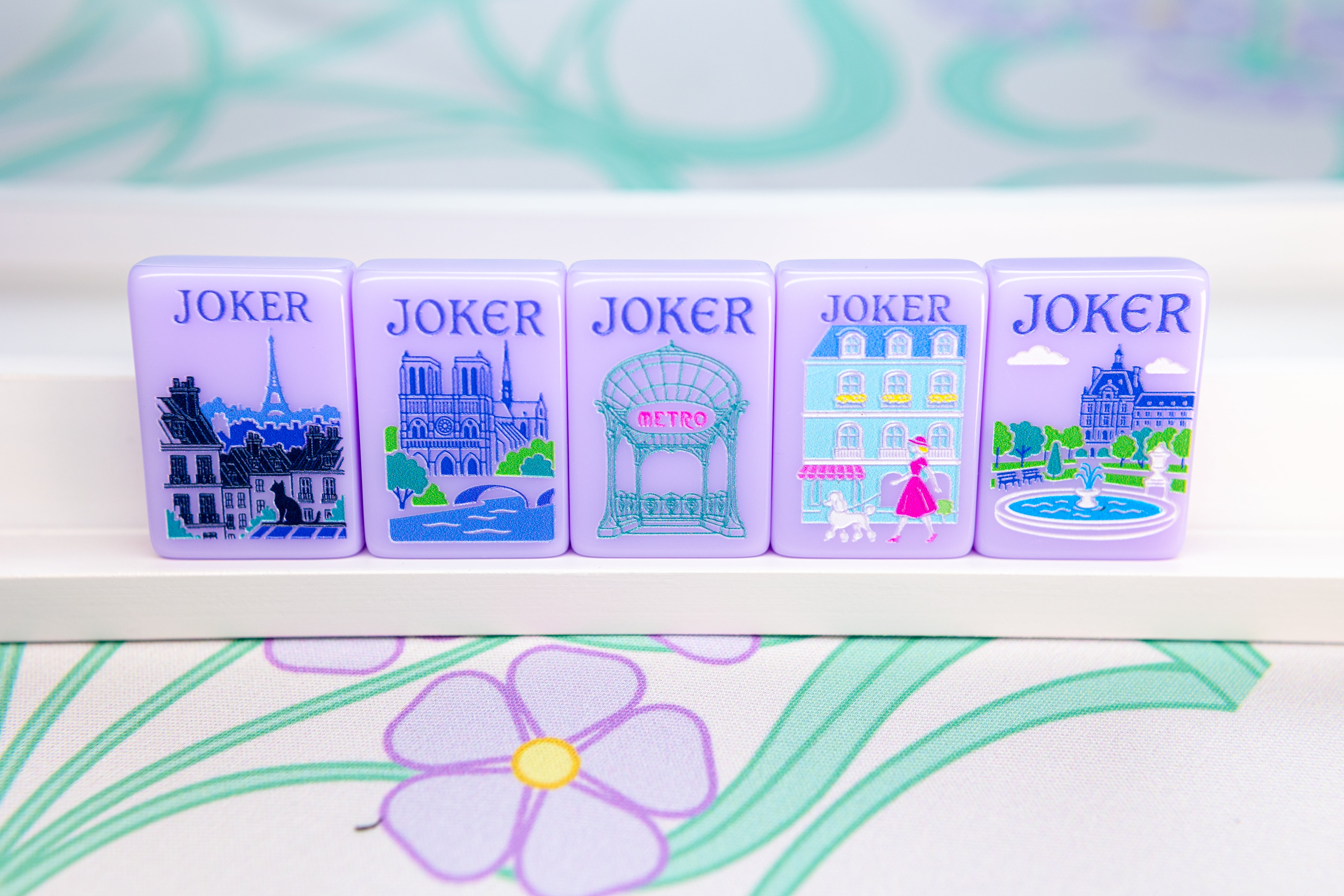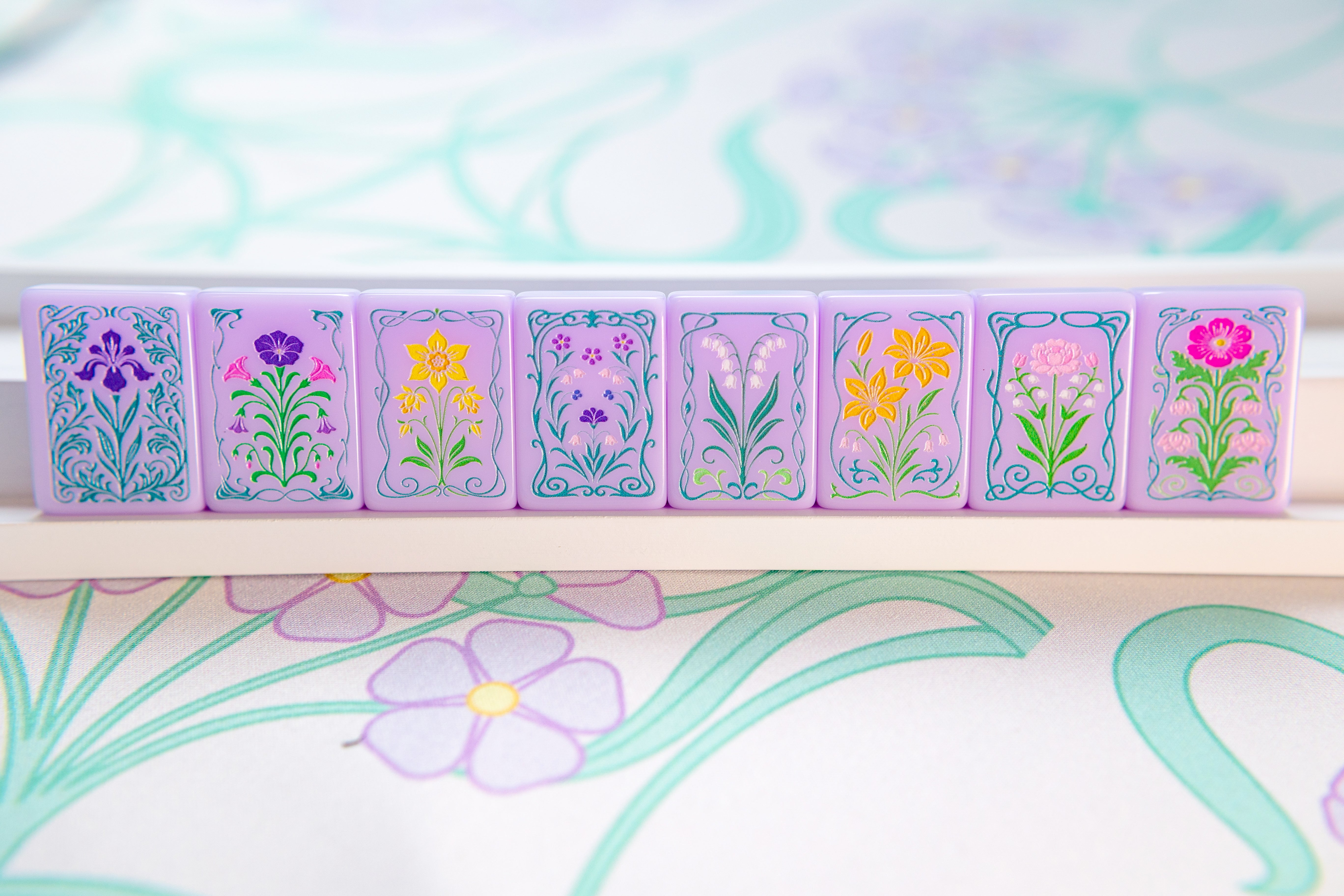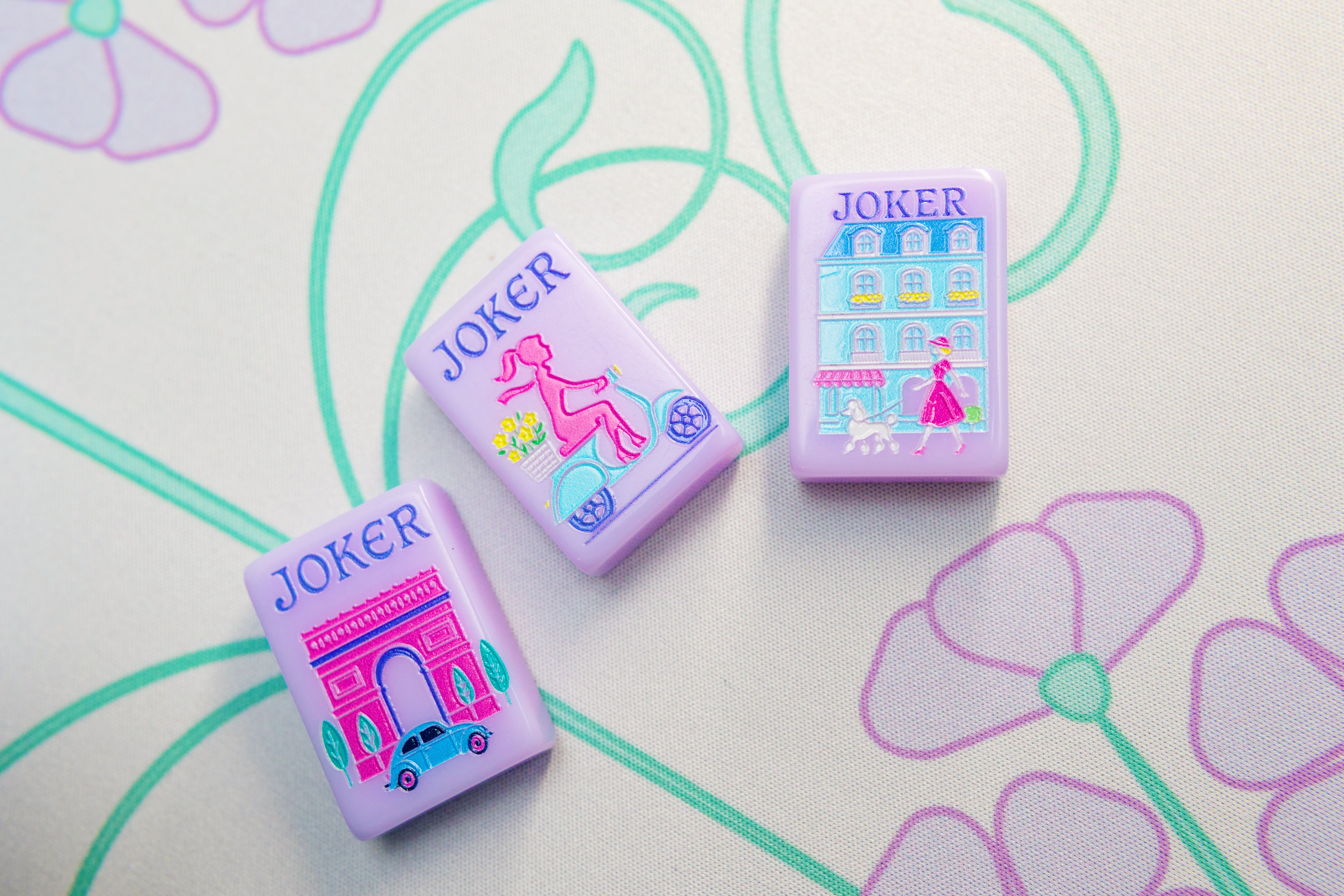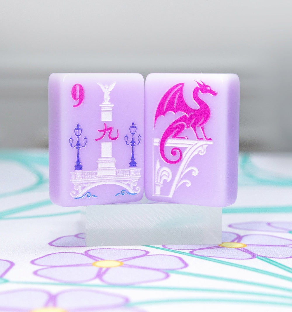 This mahjong set is a love letter to that experience. Paris is at once whimsical and organic, yet also elegant and refined—and the Art Nouveau style, which is woven throughout the city, became the foundation of my designs. Each suit carries those flowing lines, delicate flourishes, and soft lavender tones, making every tile feel like a tiny piece of Paris.