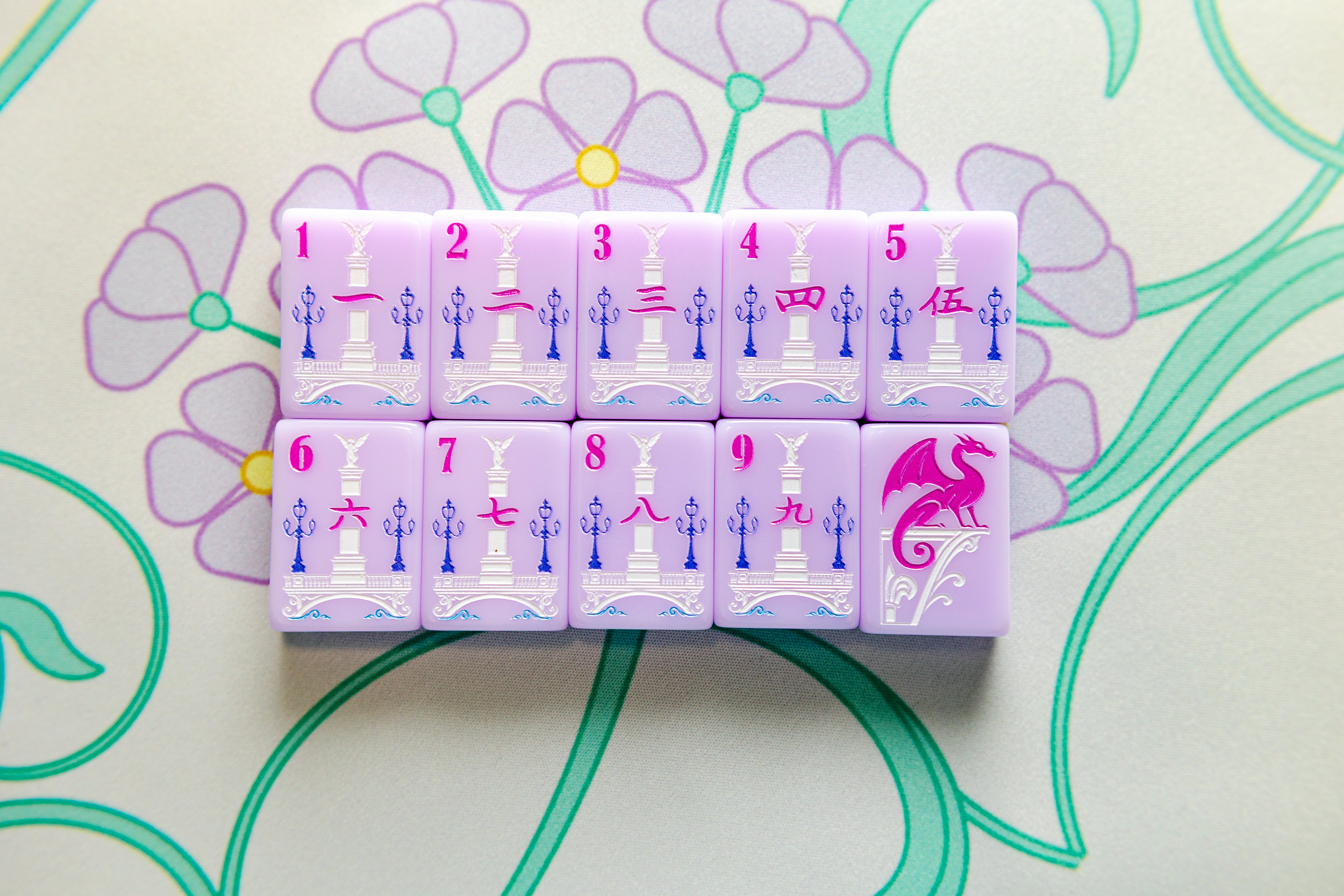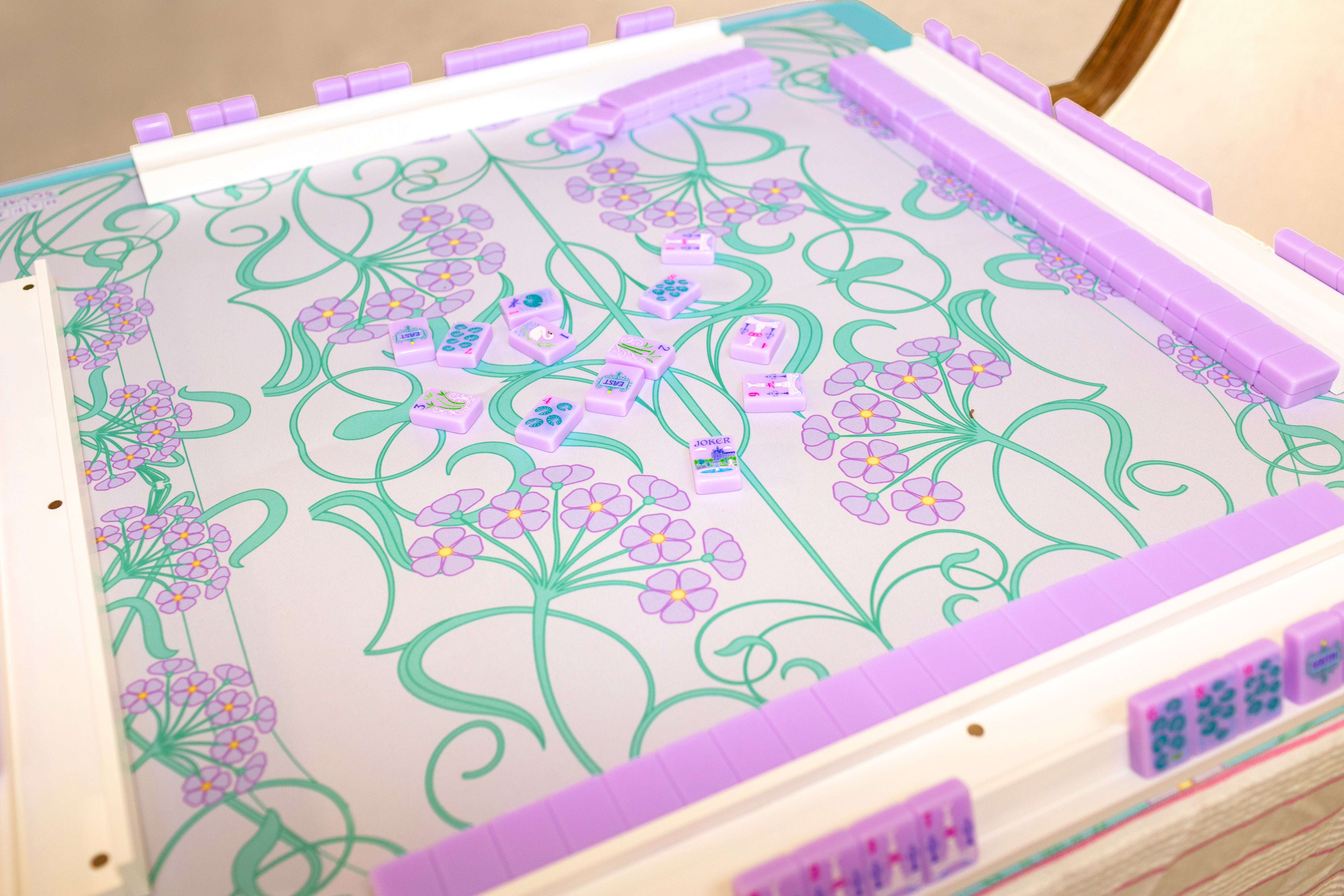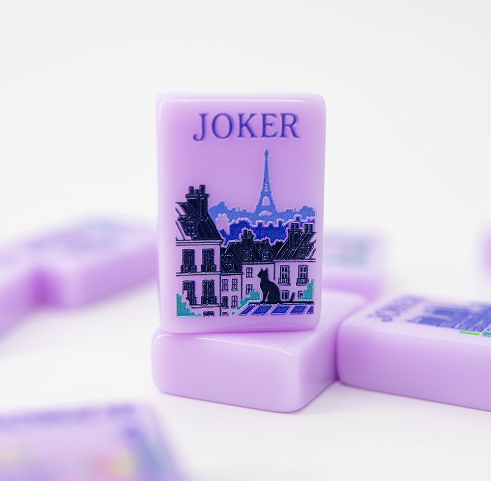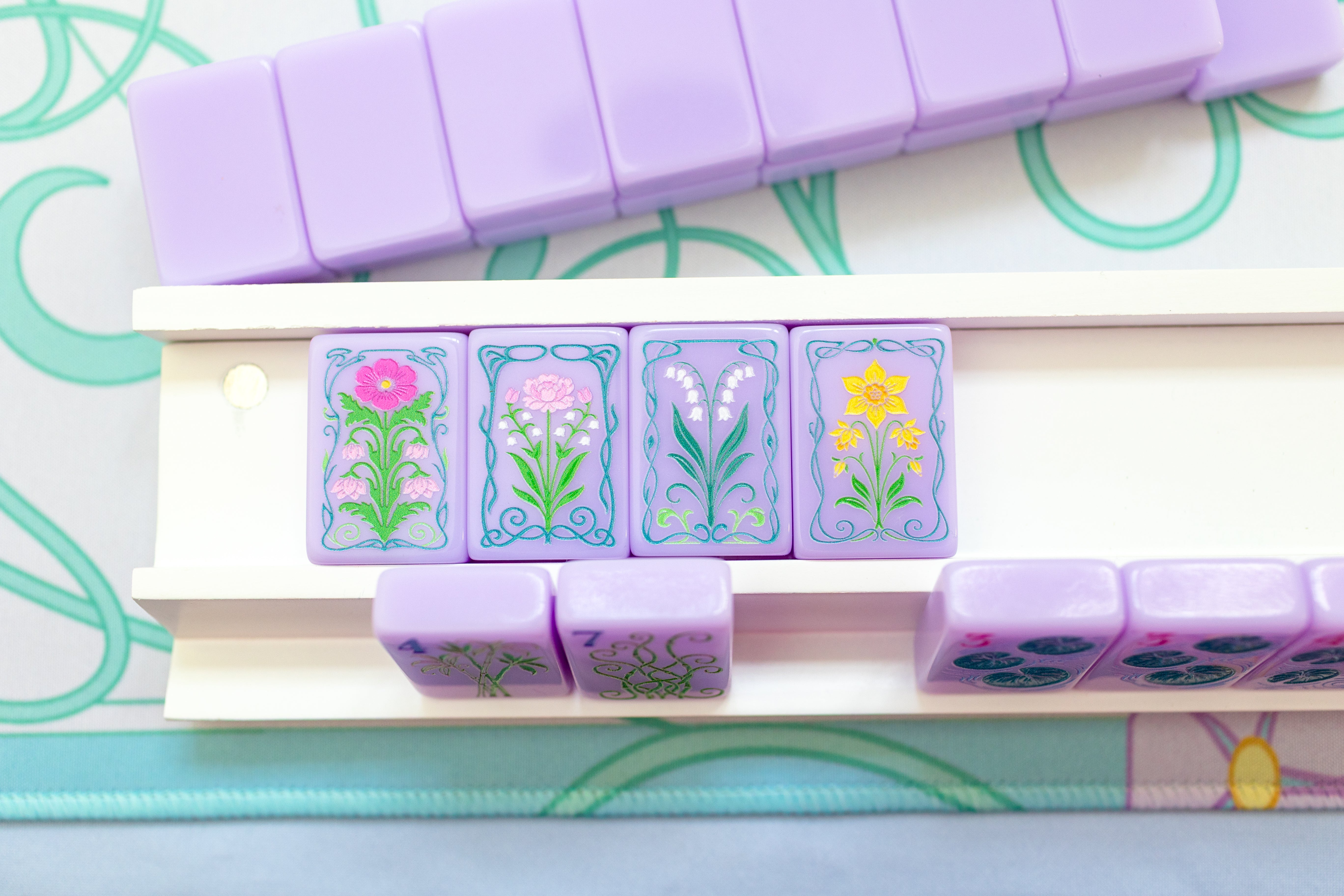 This mahjong set is a love letter to that experience. Paris is at once whimsical and organic, yet also elegant and refined—and the Art Nouveau style, which is woven throughout the city, became the foundation of my designs. Each suit carries those flowing lines, delicate flourishes, and soft lavender tones, making every tile feel like a tiny piece of Paris.