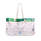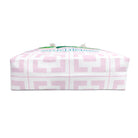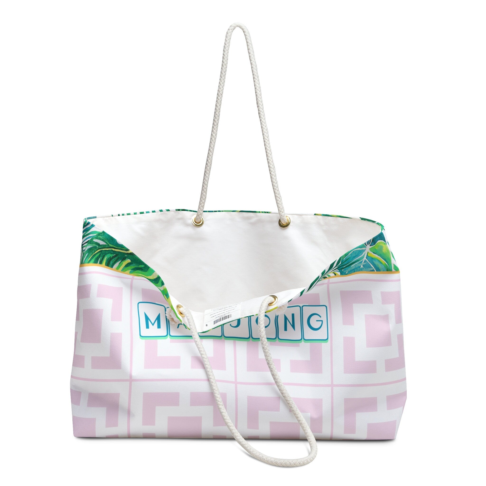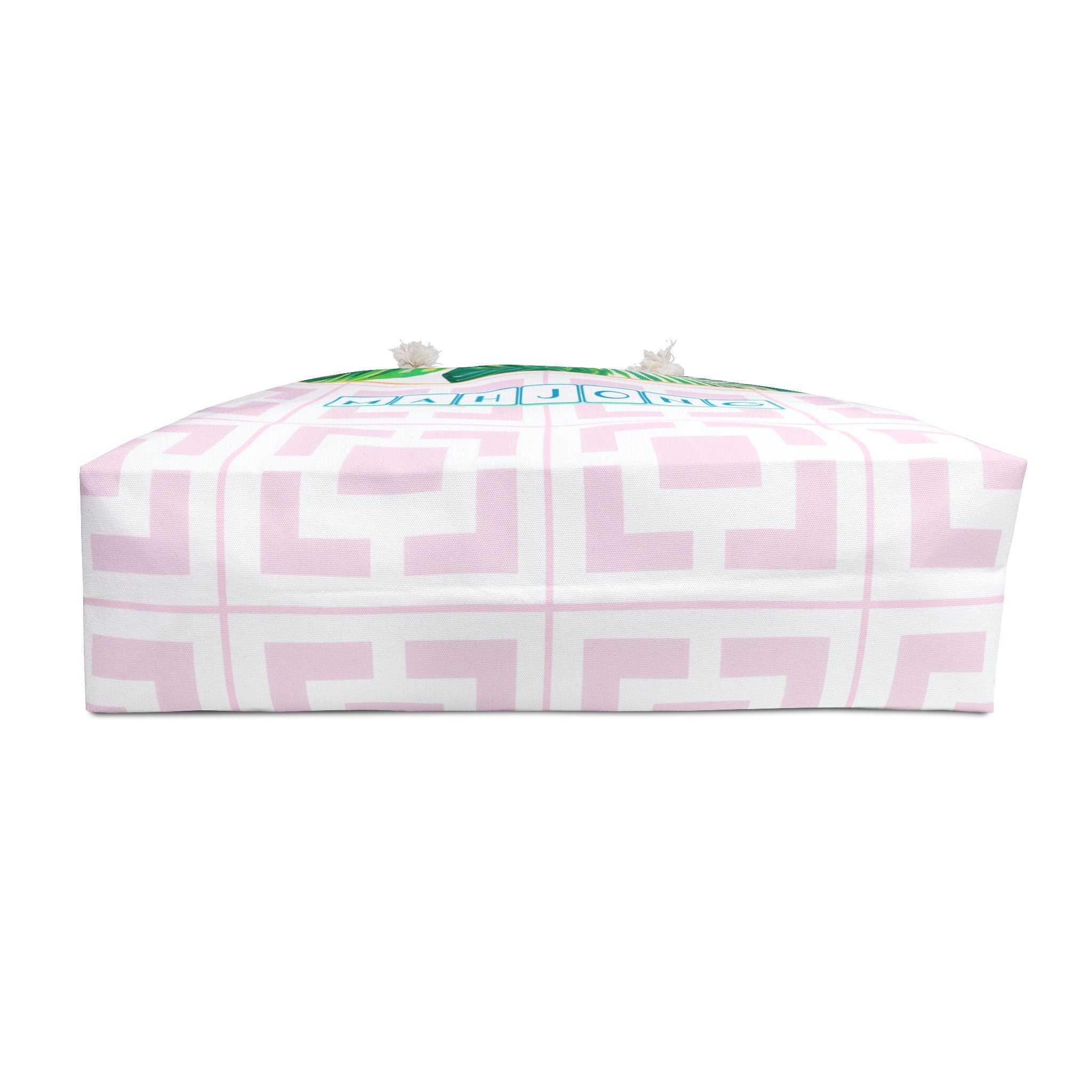 Our Palm Springs Mahjong Collection isn't complete without something to carry it all in! This large tote has the pink and white mid century geometric design with the palm border. The bag will carry all your Mahj supplies over to your friends house or to a tournament. It's a great gift as well!