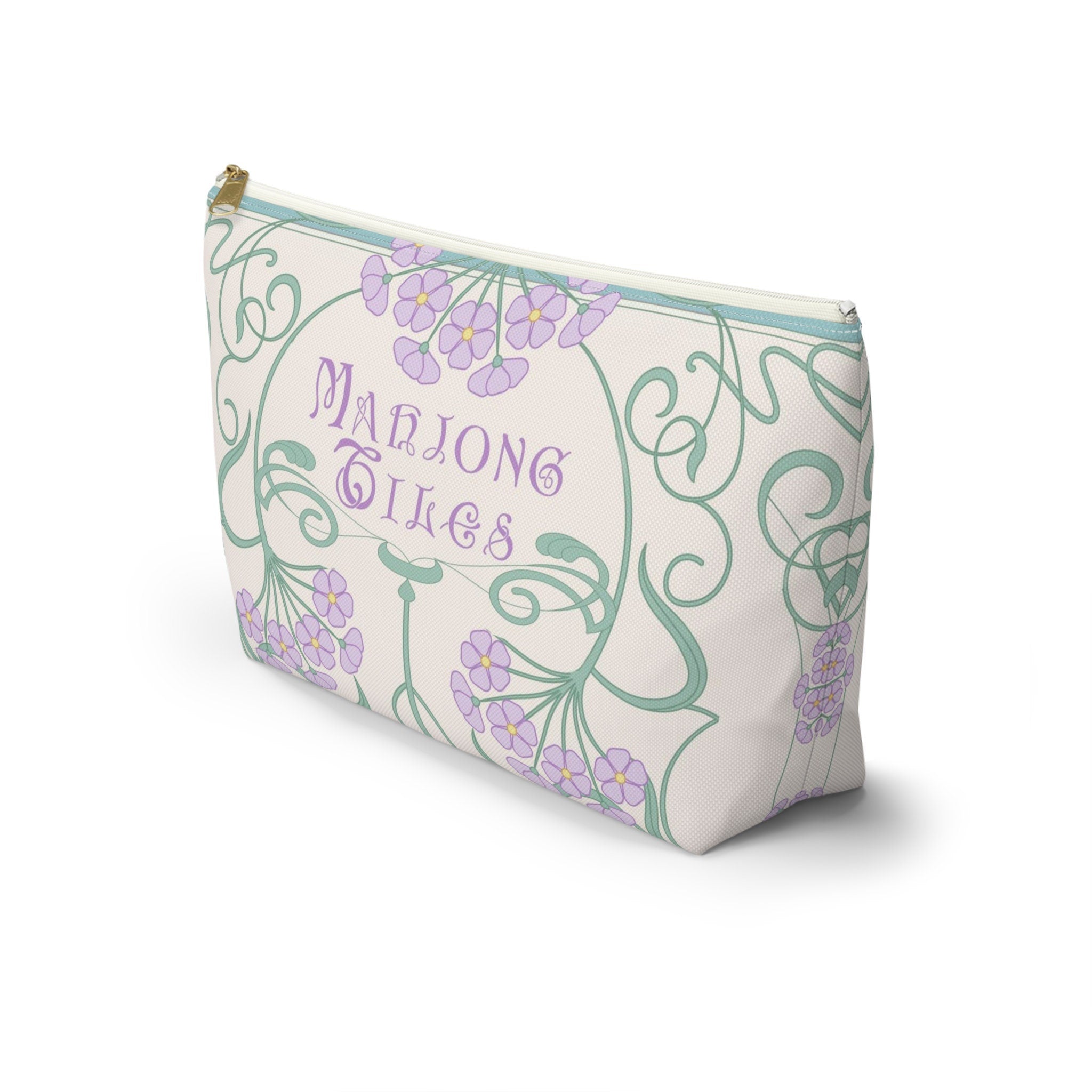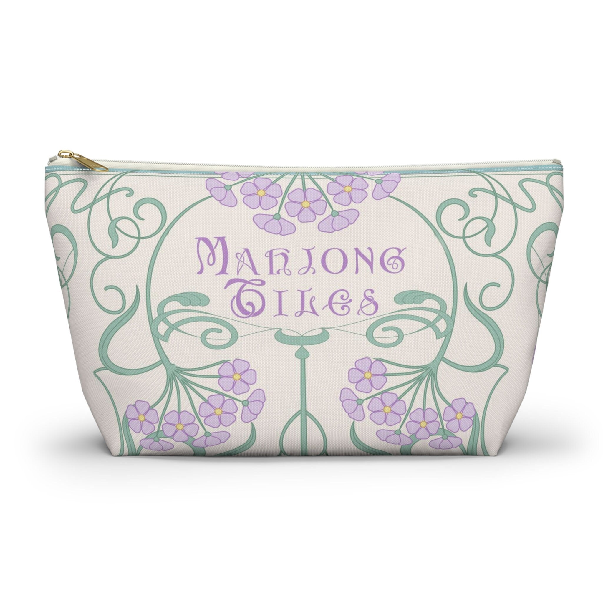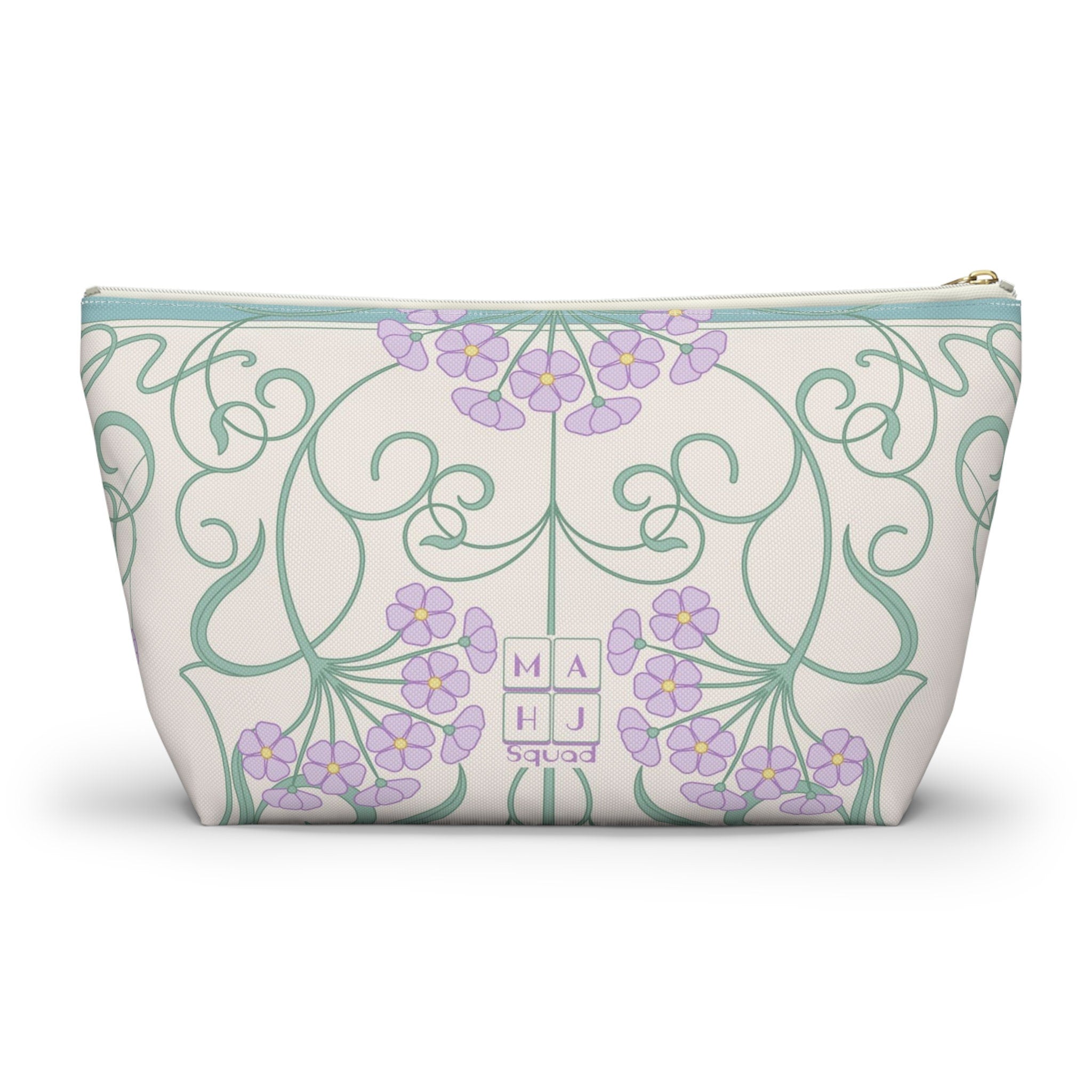 This Mahjong Tile bag is part of our Parisian Floral Collection and features intricate lilac and green floral designs. It's large enough to fit all your tiles when gathering at your Mahj parties.