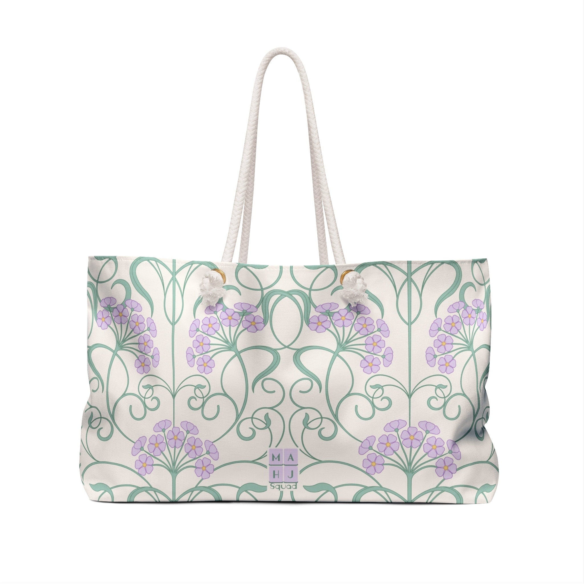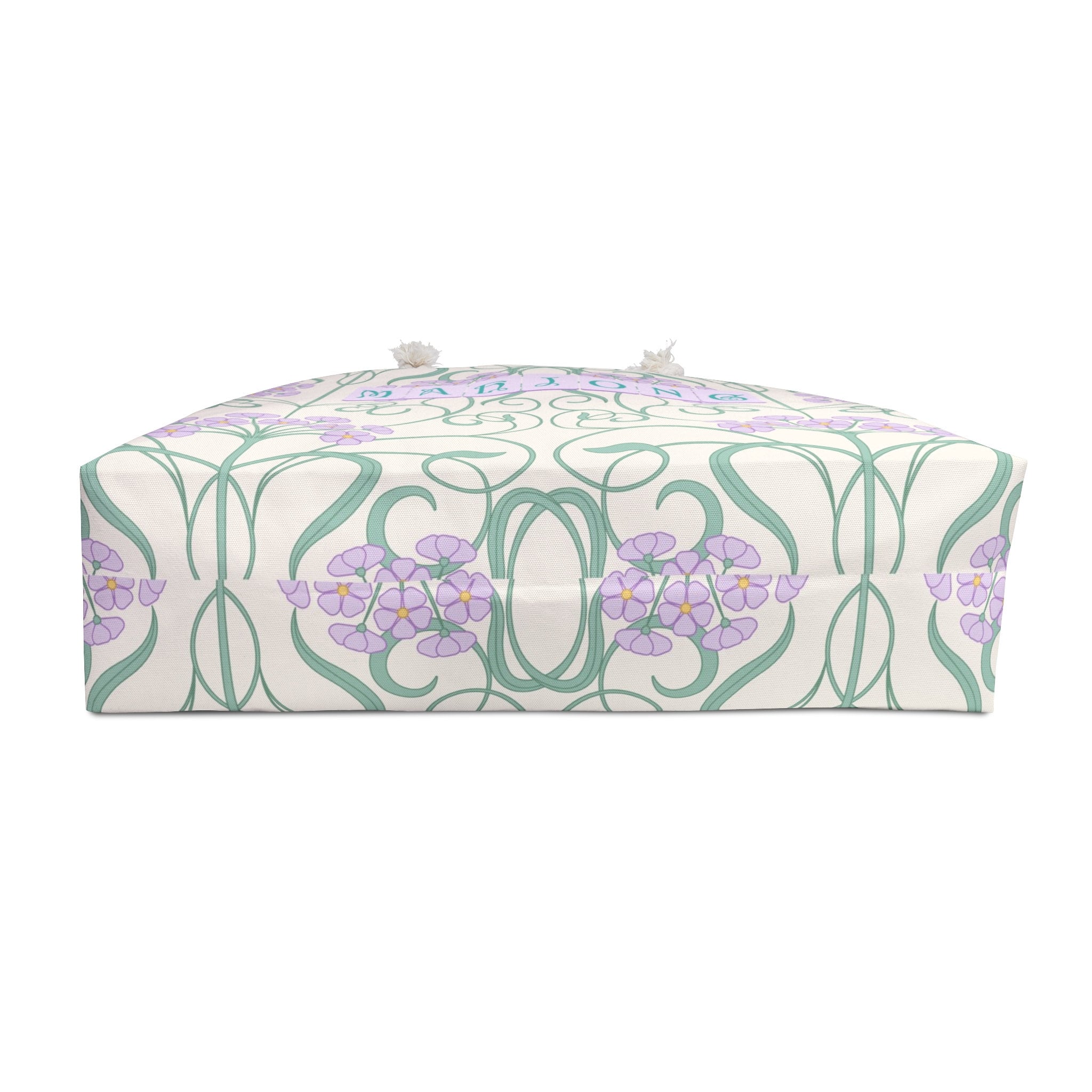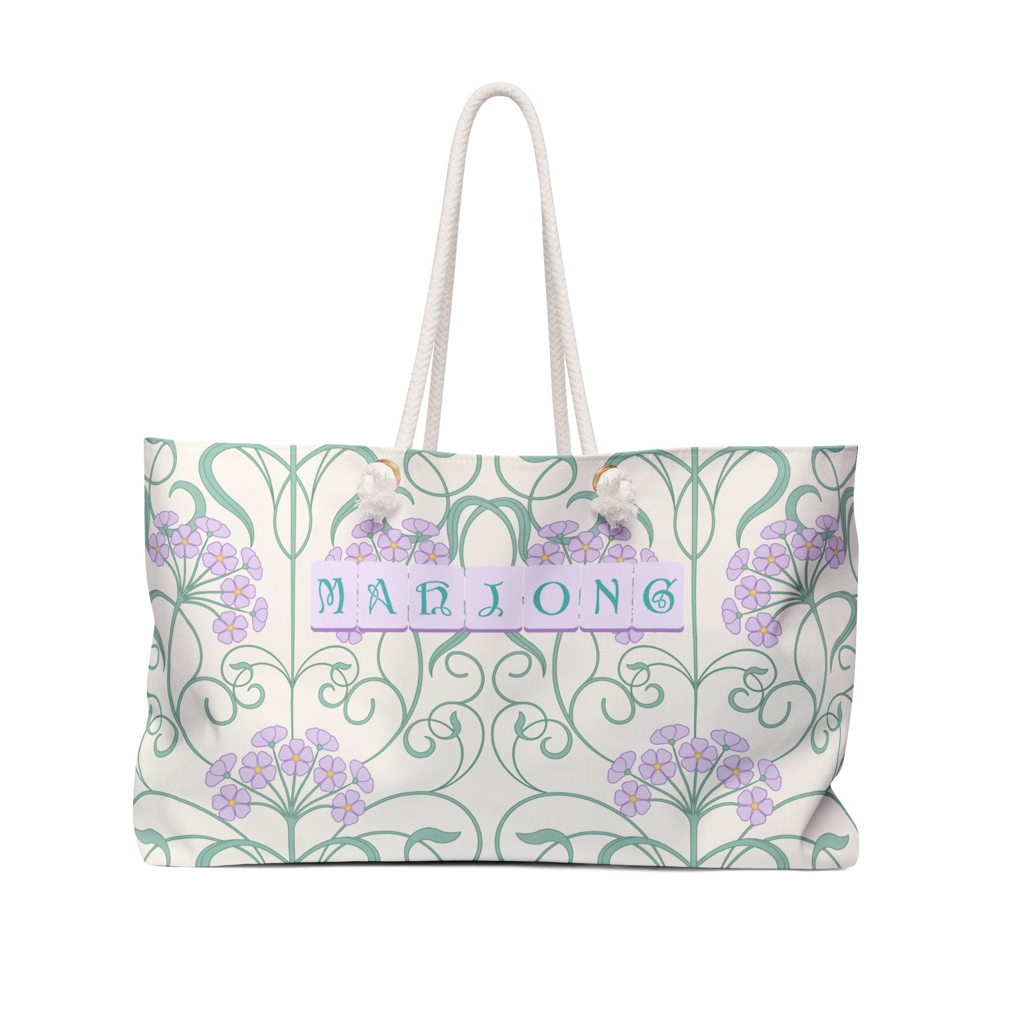 This large tote will carry all your Mahj supplies over to your friend's house or to a tournament. The word "Mahjong" is featured on the front in lavender and pale green with an art nouveau design to match the Parisian Floral collection of Mahjong supplies. It's a great gift as well!