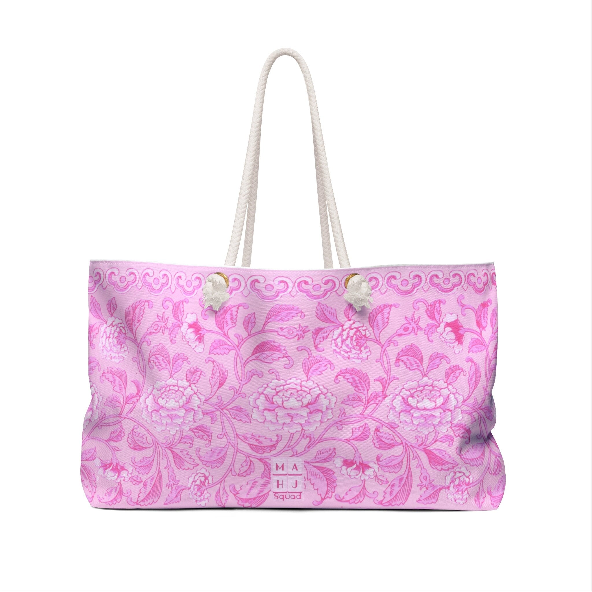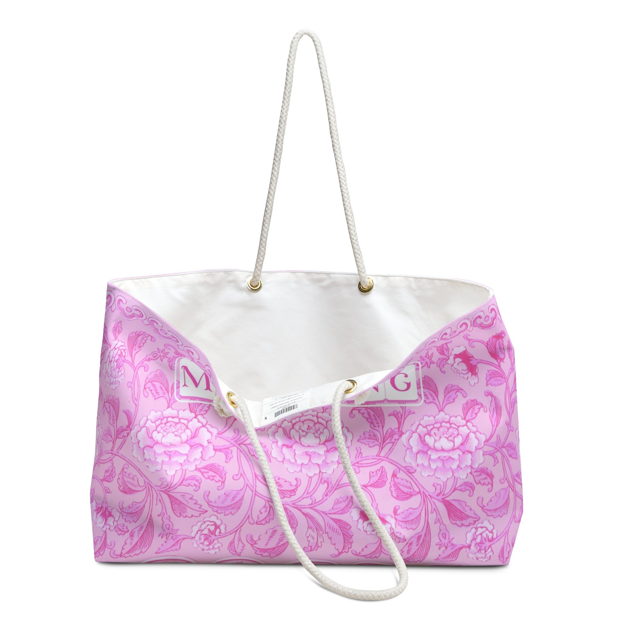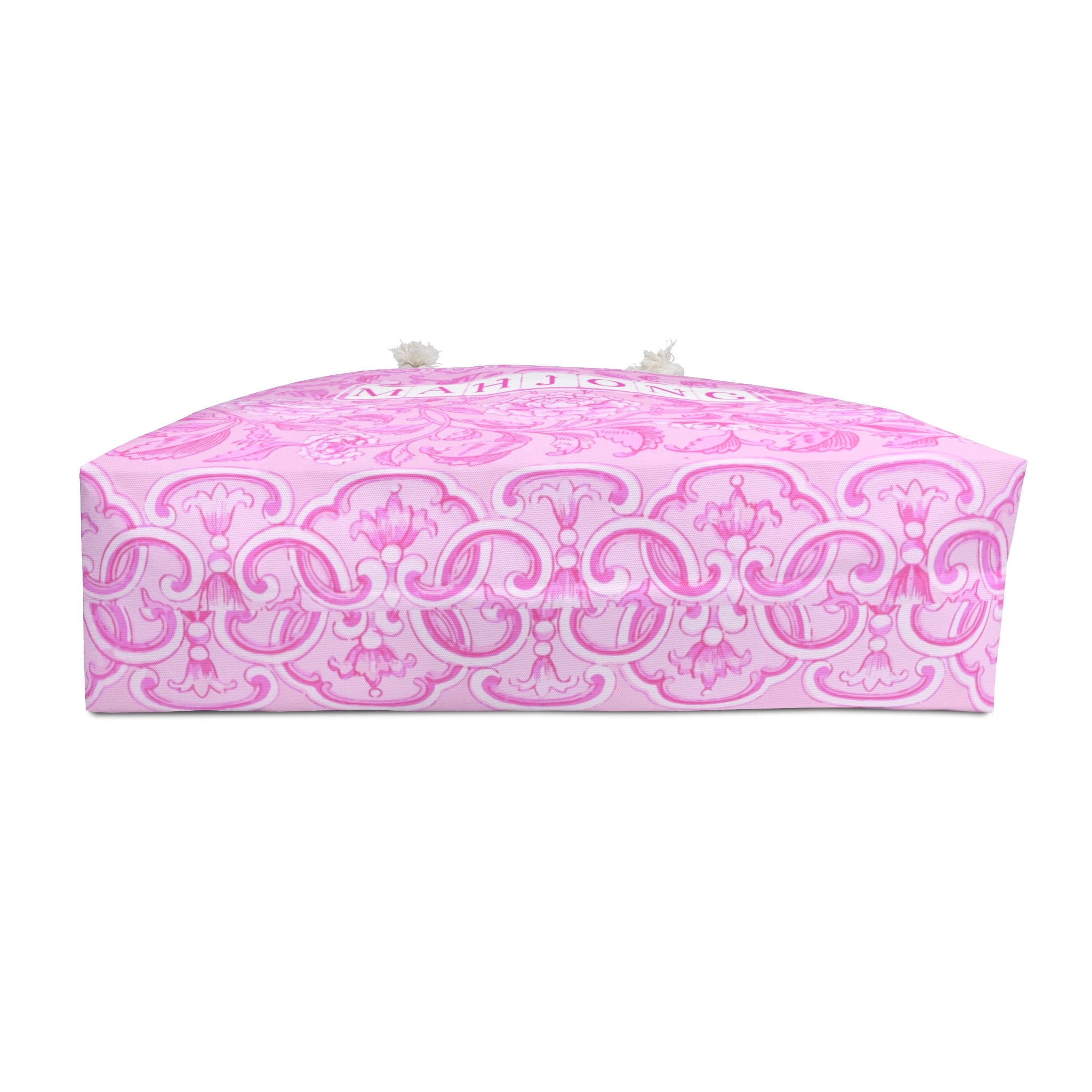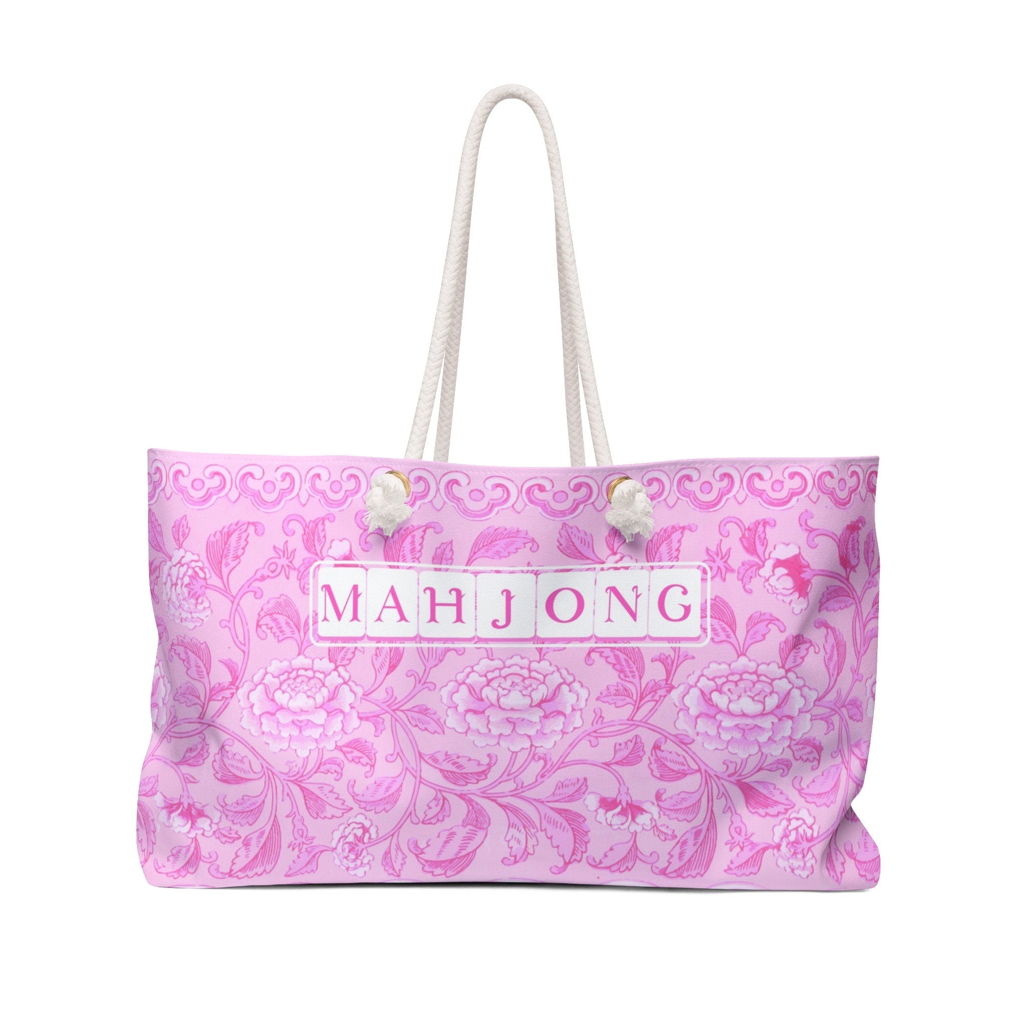 This large tote will carry all your Mahj supplies over to your friends house or to a tournament. The word "Mahjong" is featured on the front in bright pink over a pink Chinoiserie print. It's a great gift as well!