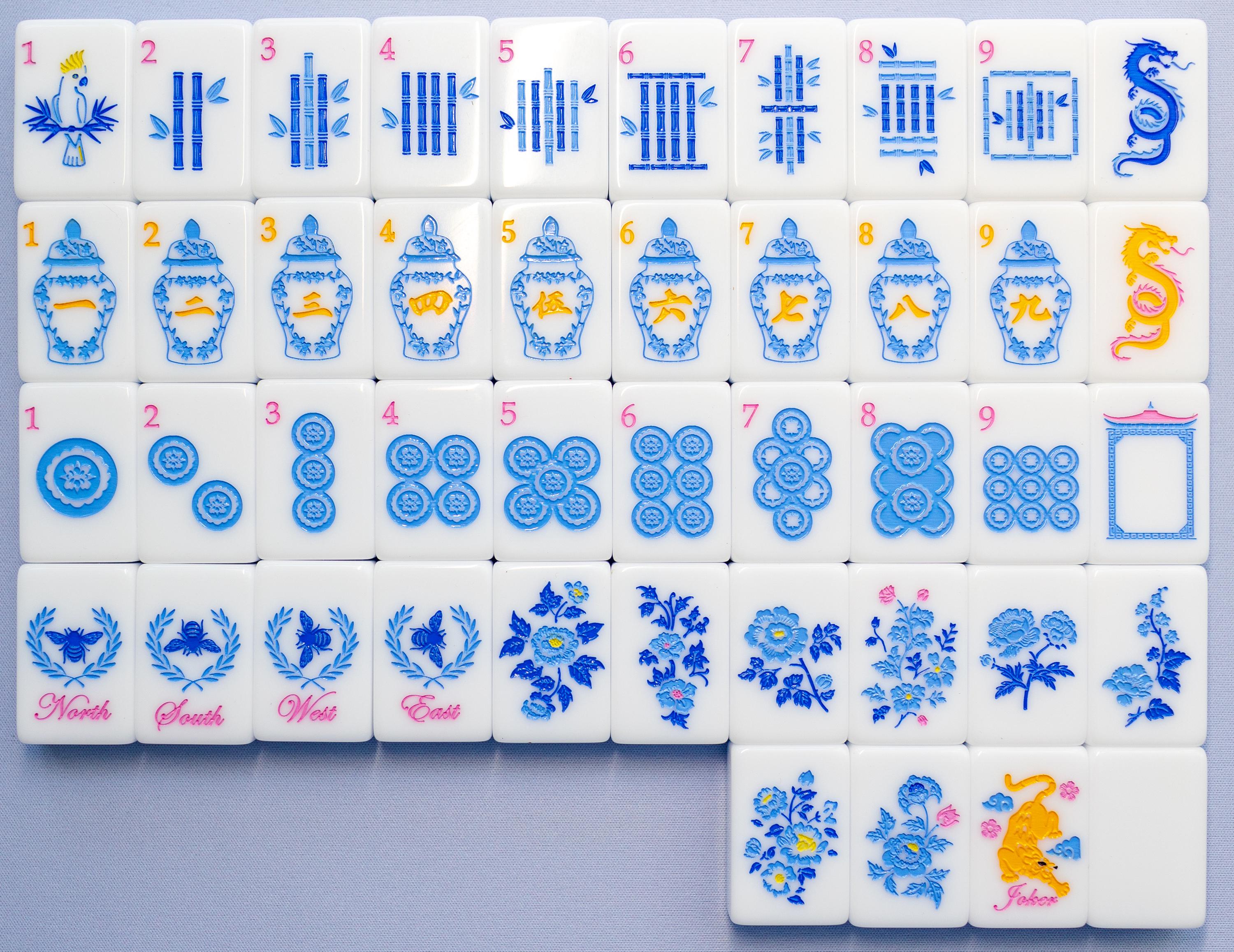 Blue Chinoiserie Mahjong Tiles