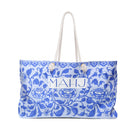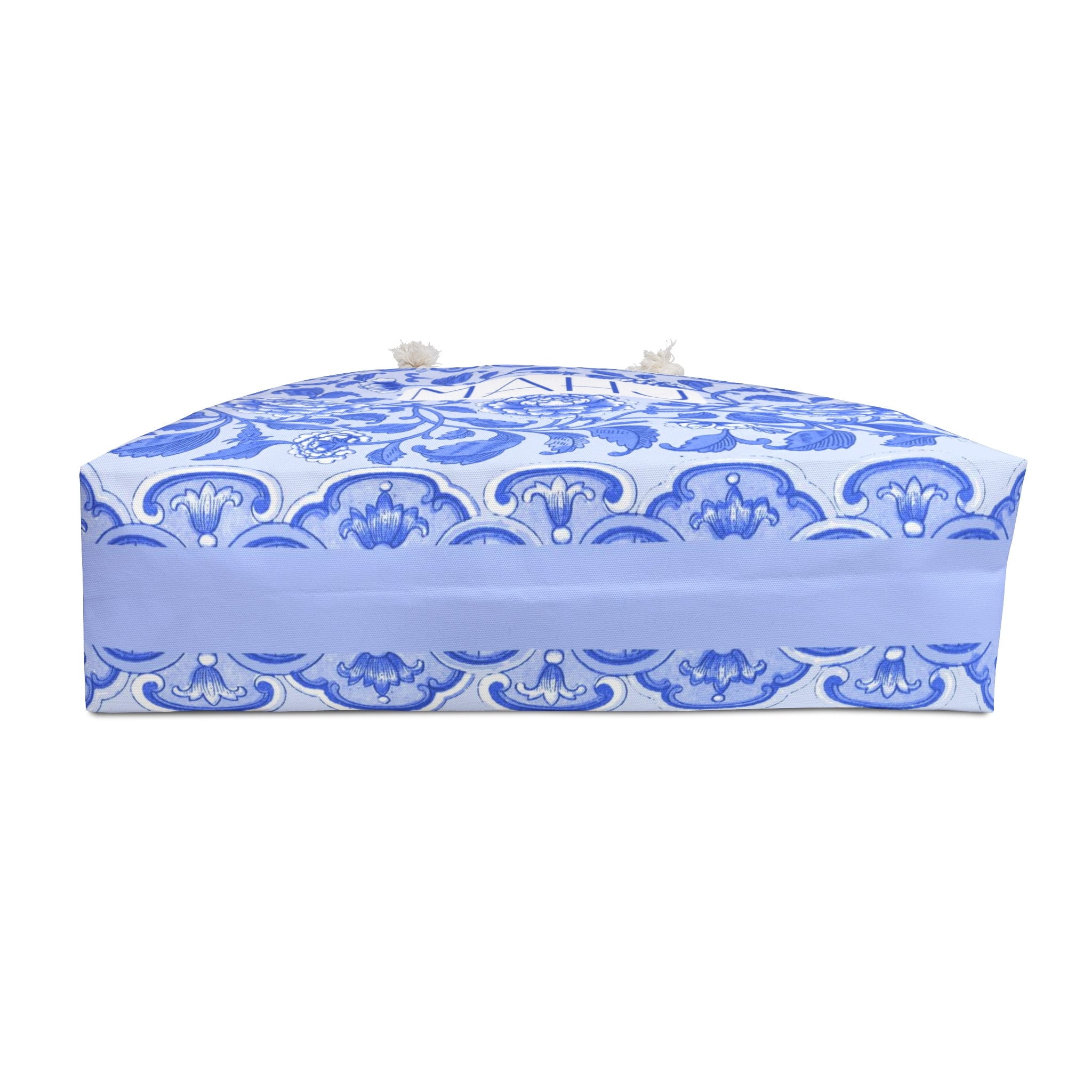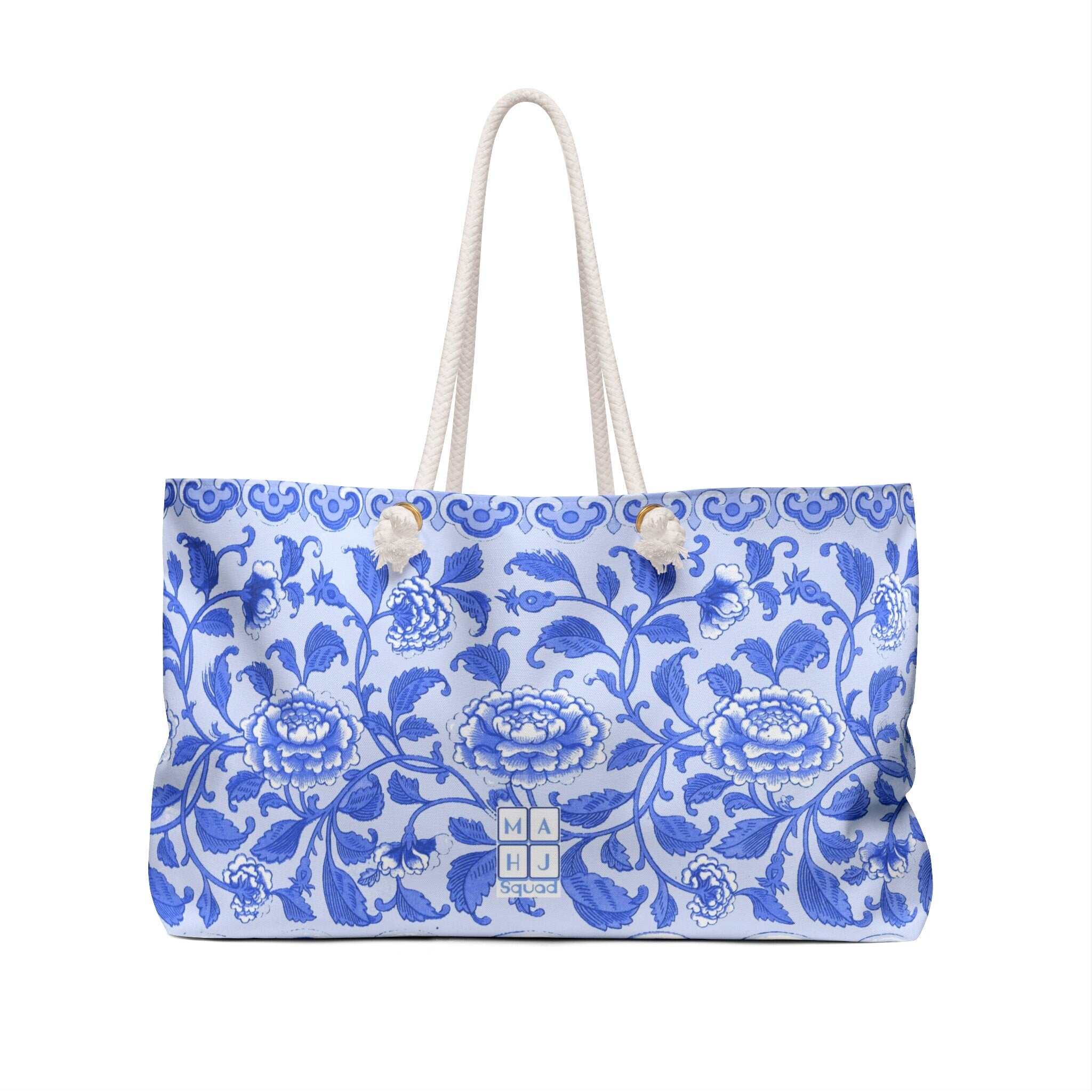 Our Chinoiserie Mahjong Collection is perfect for all those blue and white lovers! This large tote will carry all your Mahj supplies over to your friends house or to a tournament. The word "Mahj" is featured on the front on top of a Chinoiserie floral blue and white pattern. It's a great gift as well!