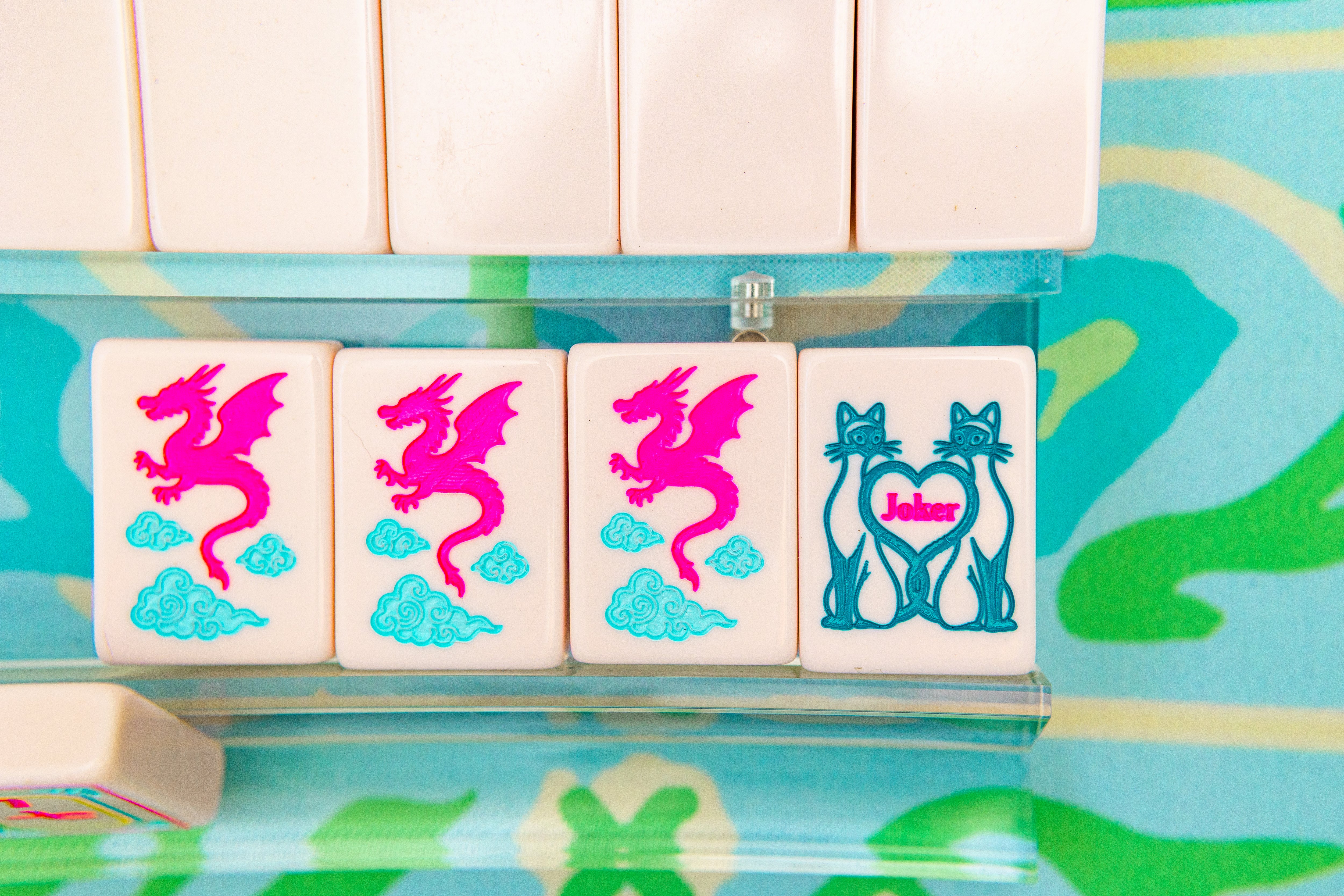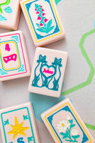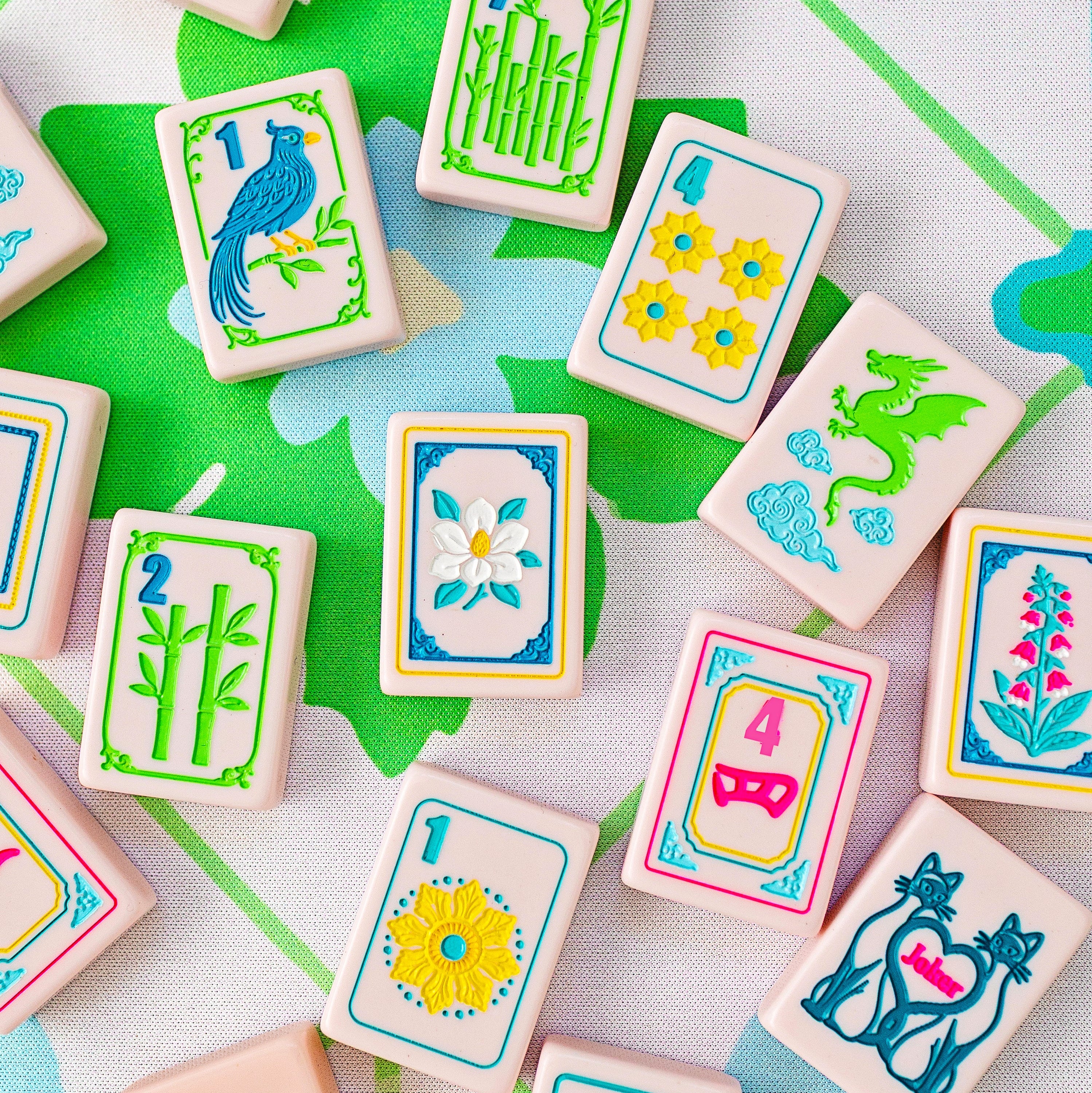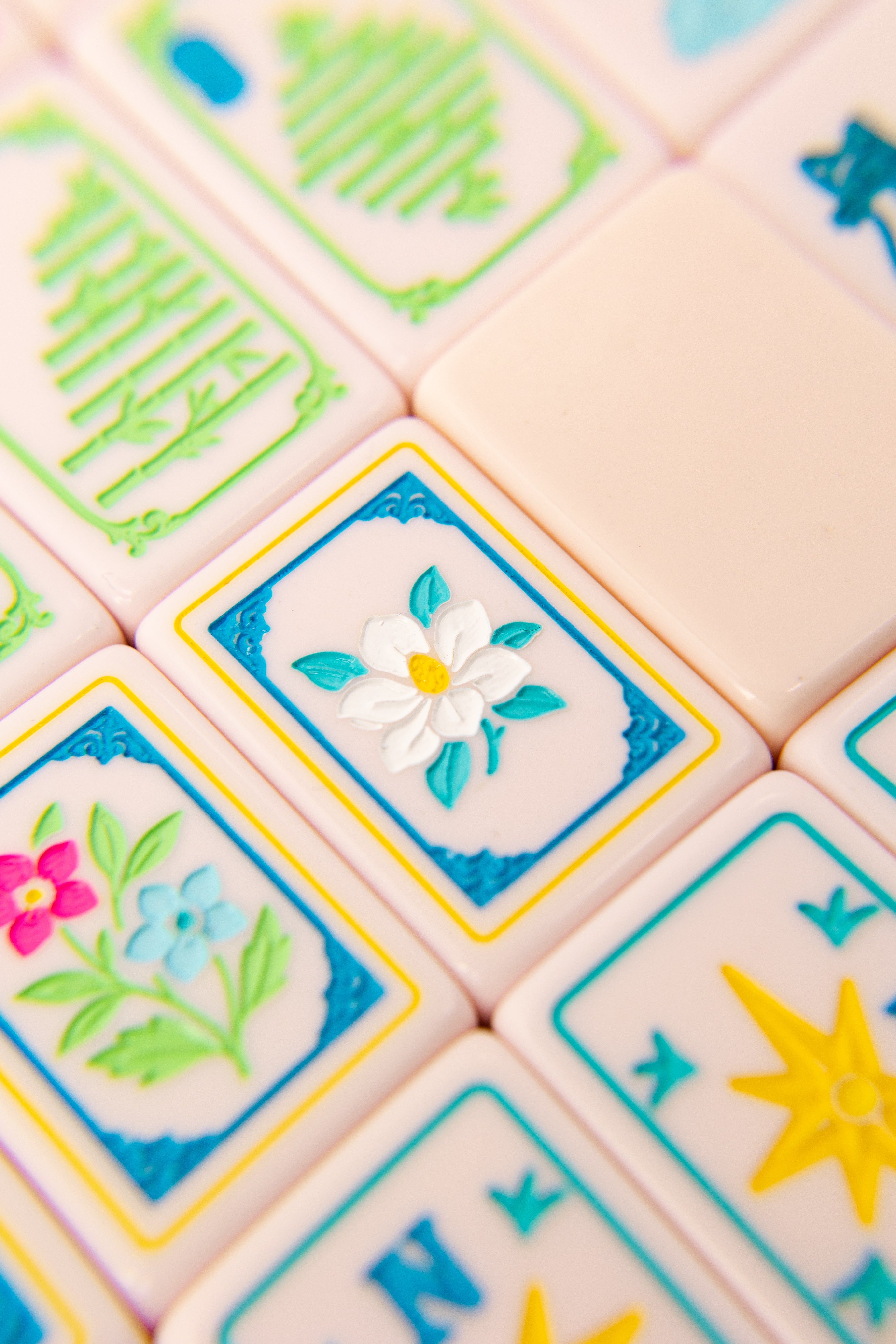 The Just Peachy Collection brings classic mahjong icons to life in a fresh, playful palette of soft peach, turquoise, hot pink and sunny yellow. The tiles feature intricate floral details and cheerful color pairings designed for effortless, joyful gameplay. A pair of charming cat jokers add a whimsical wink, making every game as stylish as it is fun. This set blends timeless tradition with preppy, modern flair—perfect for players who love pretty details and personality. Whether you’re hosting mahj night or gifting something special, life’s Just Peachy when you're playing Mahjong!