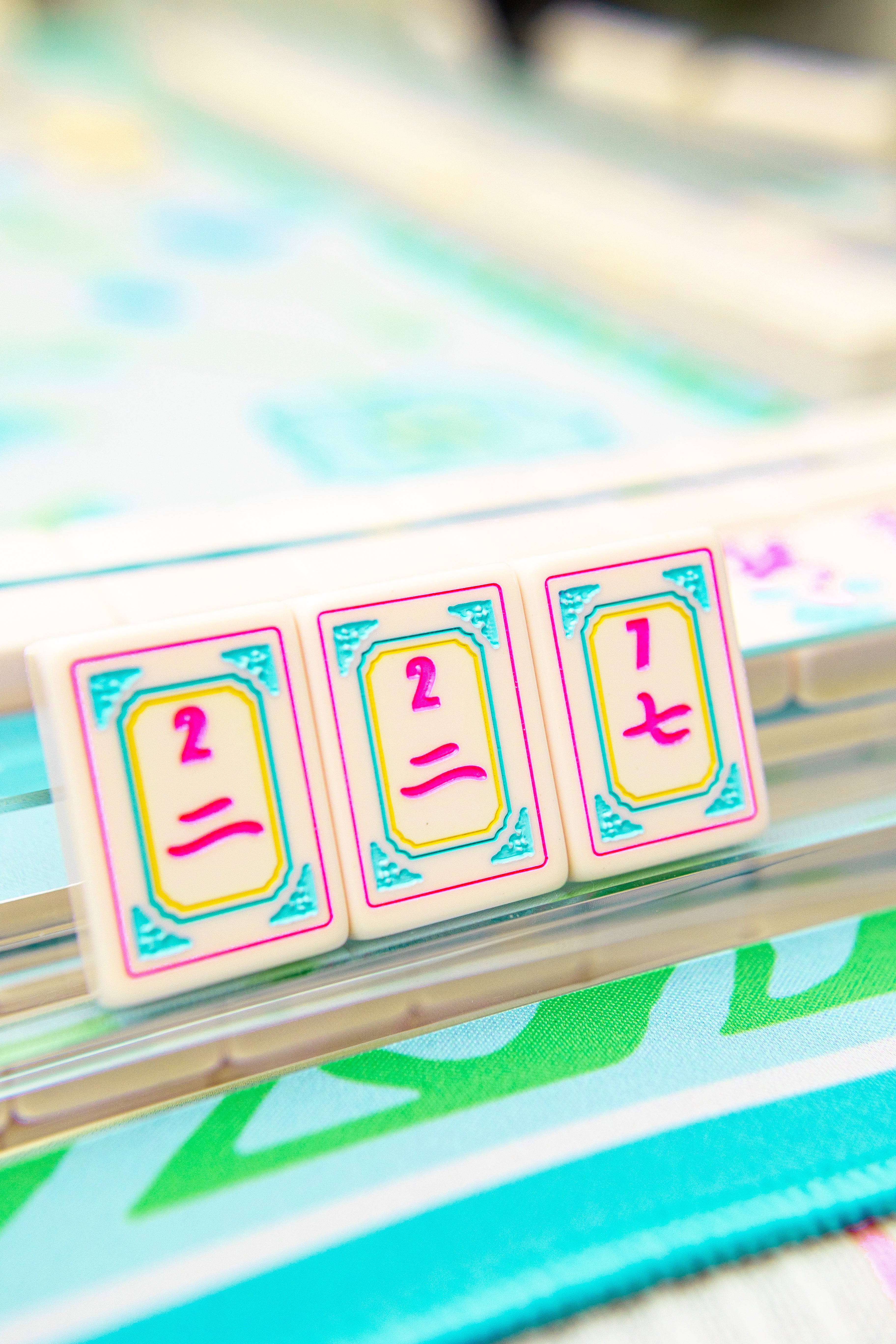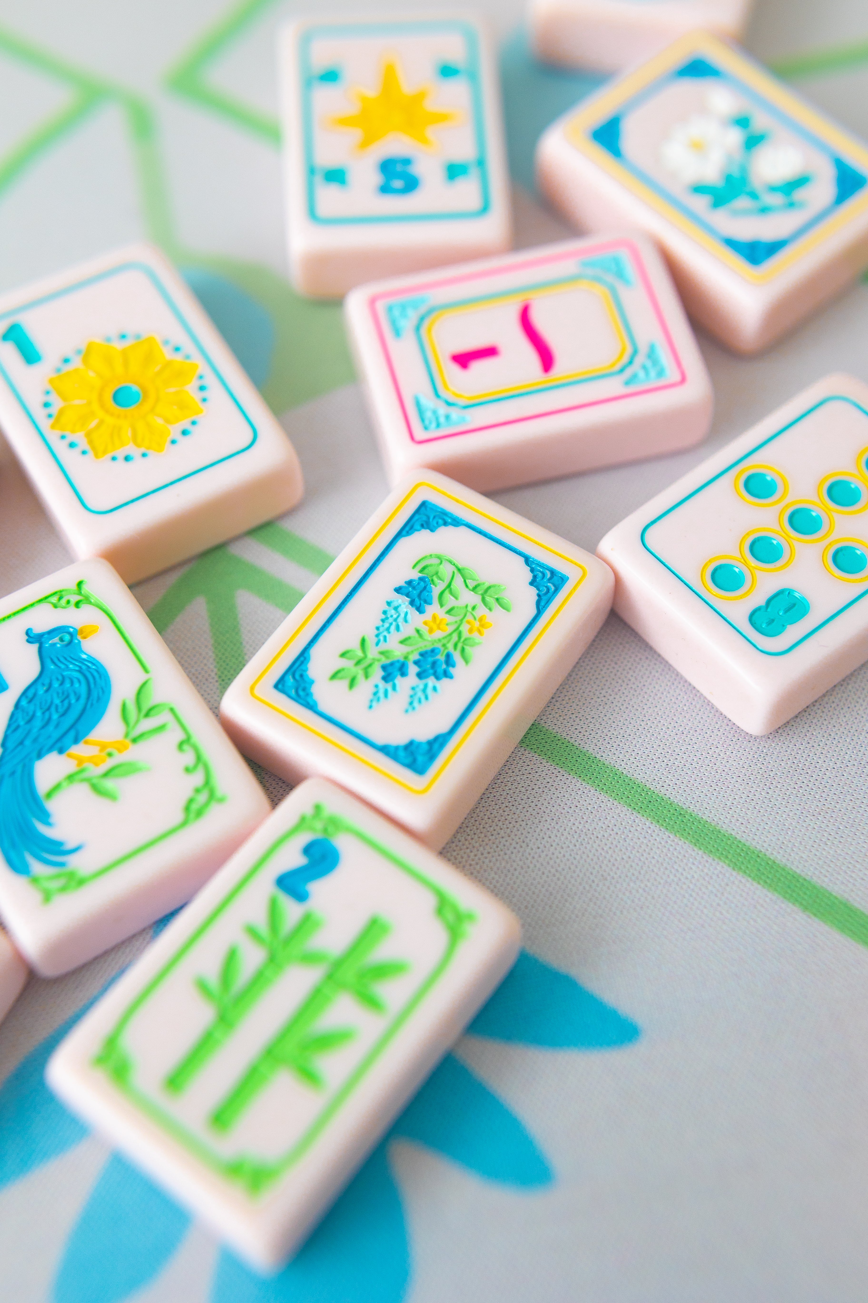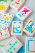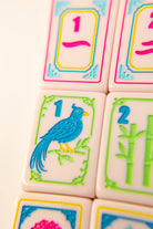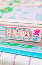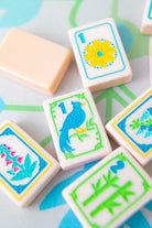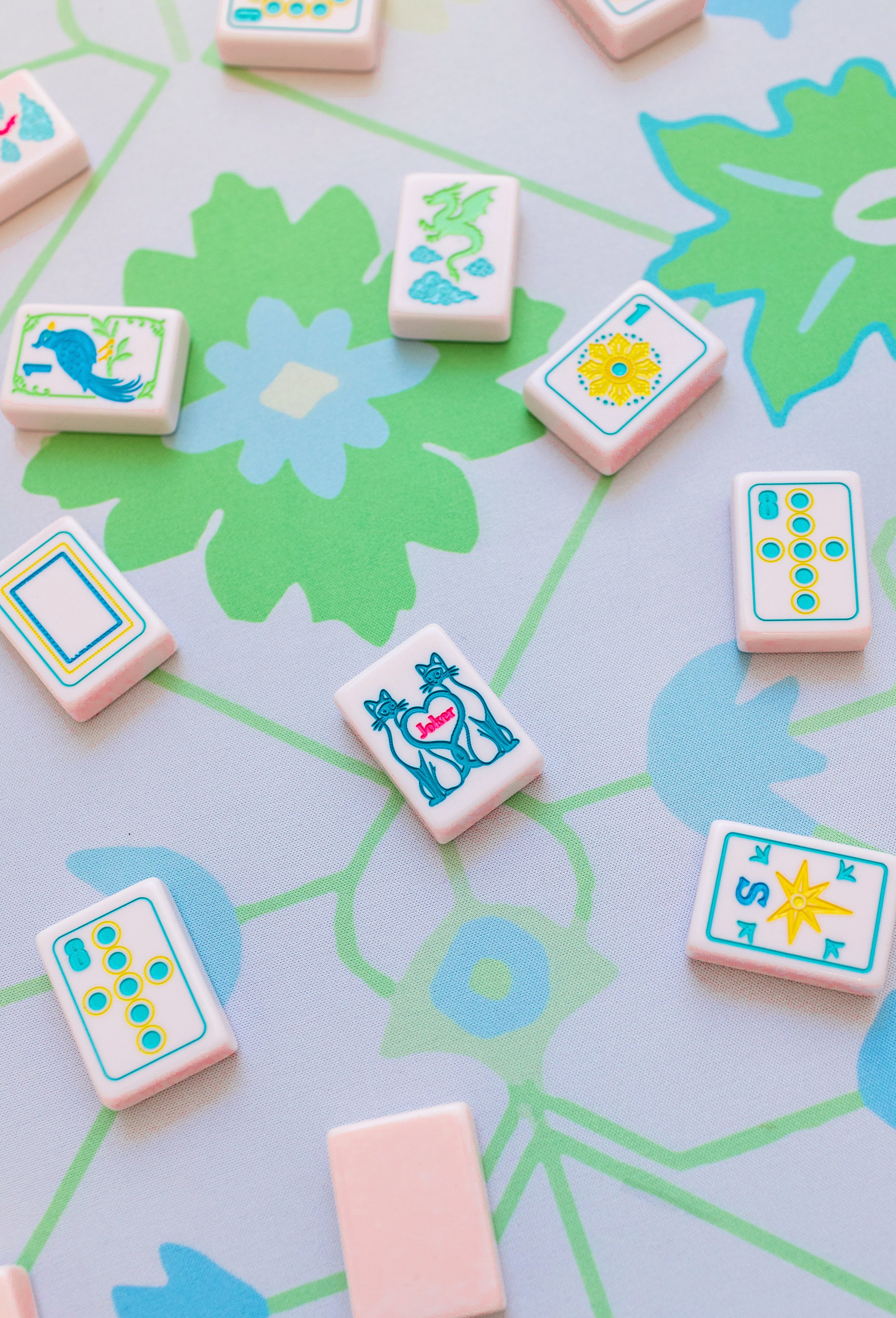 The Just Peachy Collection brings classic mahjong icons to life in a fresh, playful palette of soft peach, turquoise, hot pink and sunny yellow. The tiles feature intricate floral details and cheerful color pairings designed for effortless, joyful gameplay. A pair of charming cat jokers add a whimsical wink, making every game as stylish as it is fun. This set blends timeless tradition with preppy, modern flair—perfect for players who love pretty details and personality. Whether you’re hosting mahj night or gifting something special, life’s Just Peachy when you're playing Mahjong!