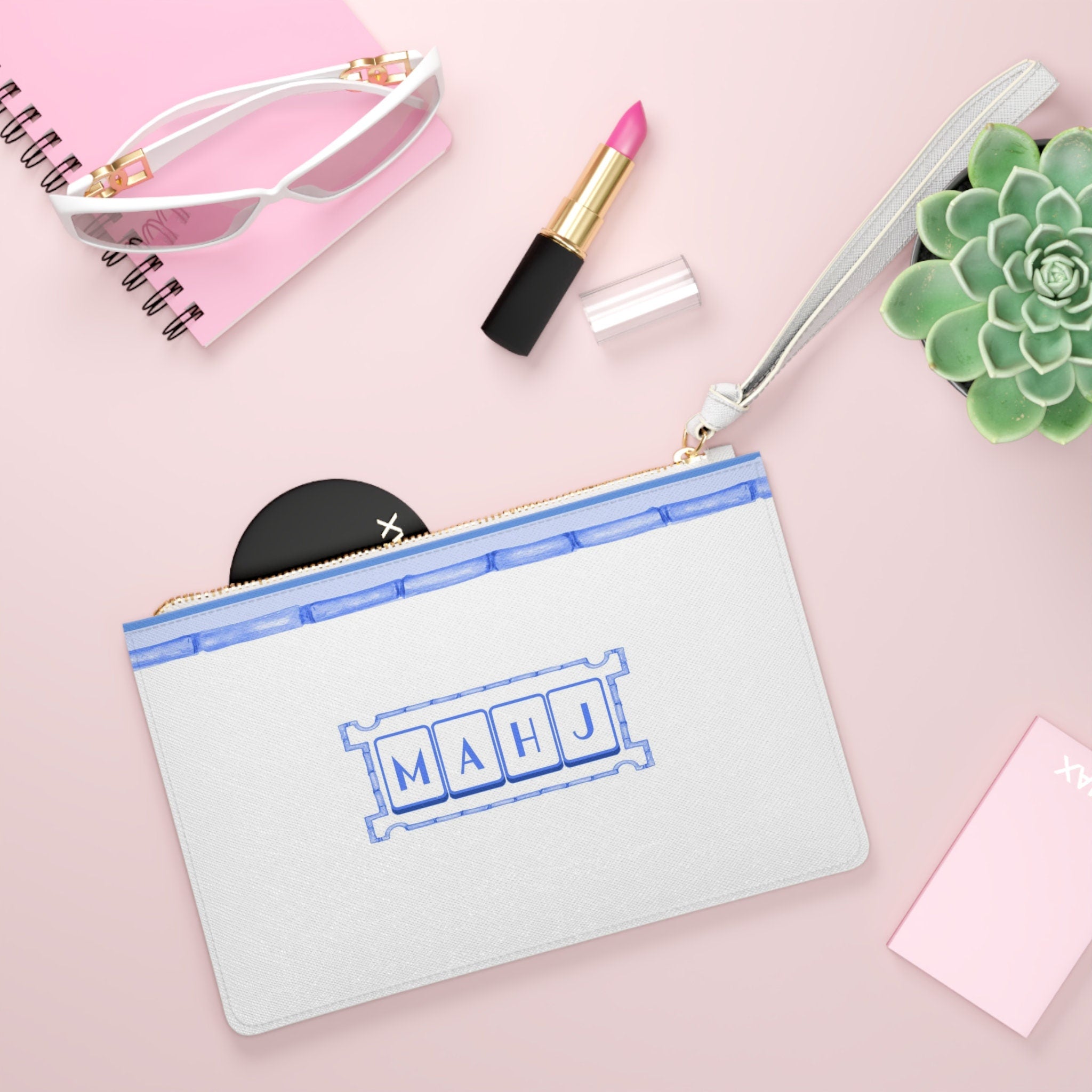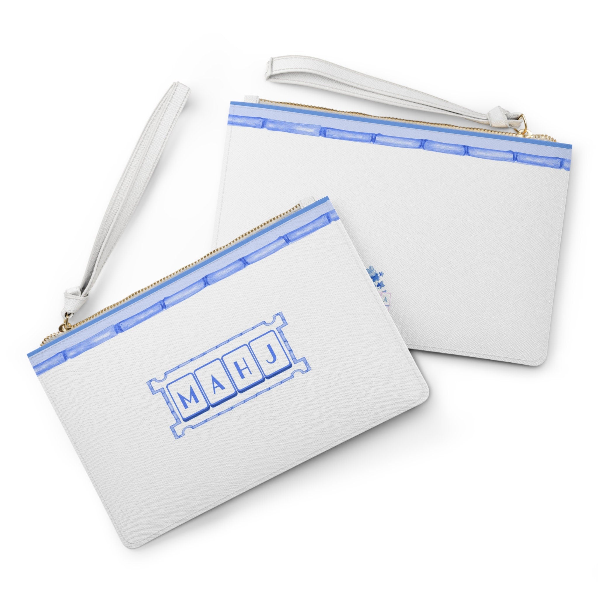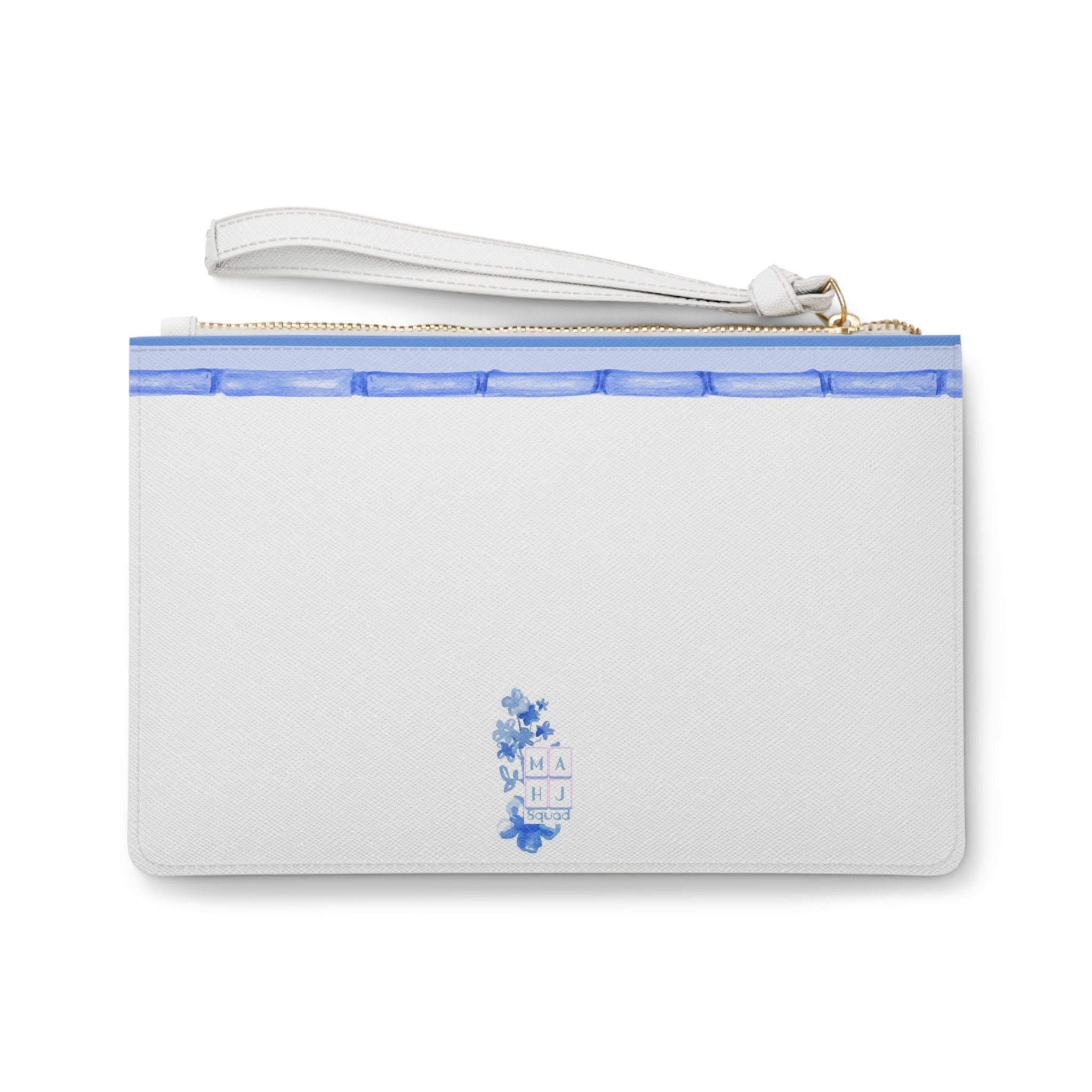 This Mahjong clutch is perfectly sized to fit all your Mahjong League cards and any other mahj accessories. It is in a blue and white Chinoiserie print with delicate flowers, birds, ferns, and pagodas. Makes a great gift for a fellow Mahjongg lover or prize! Fits both small and large mahjong cards. 9.5" x 6.6"