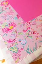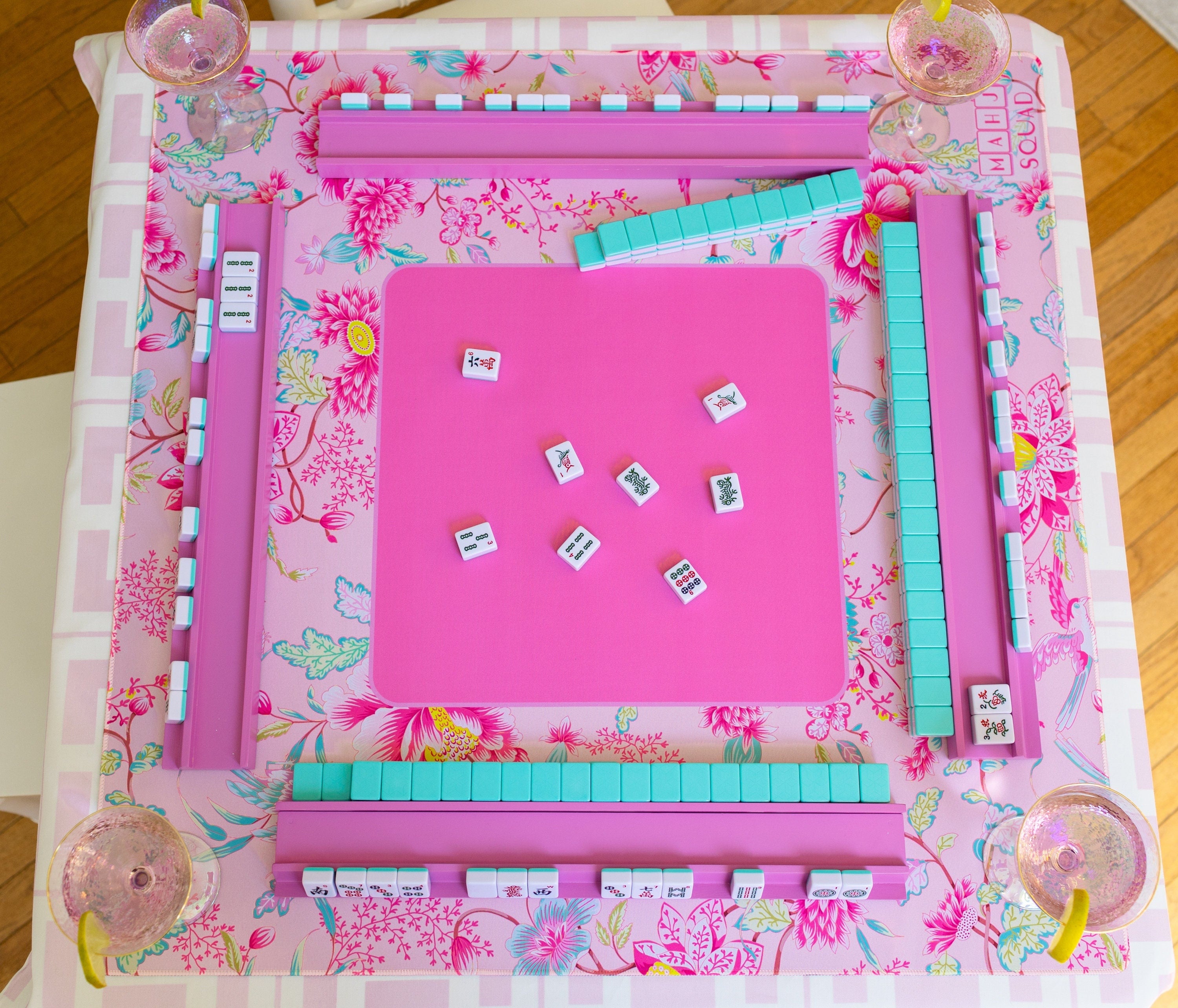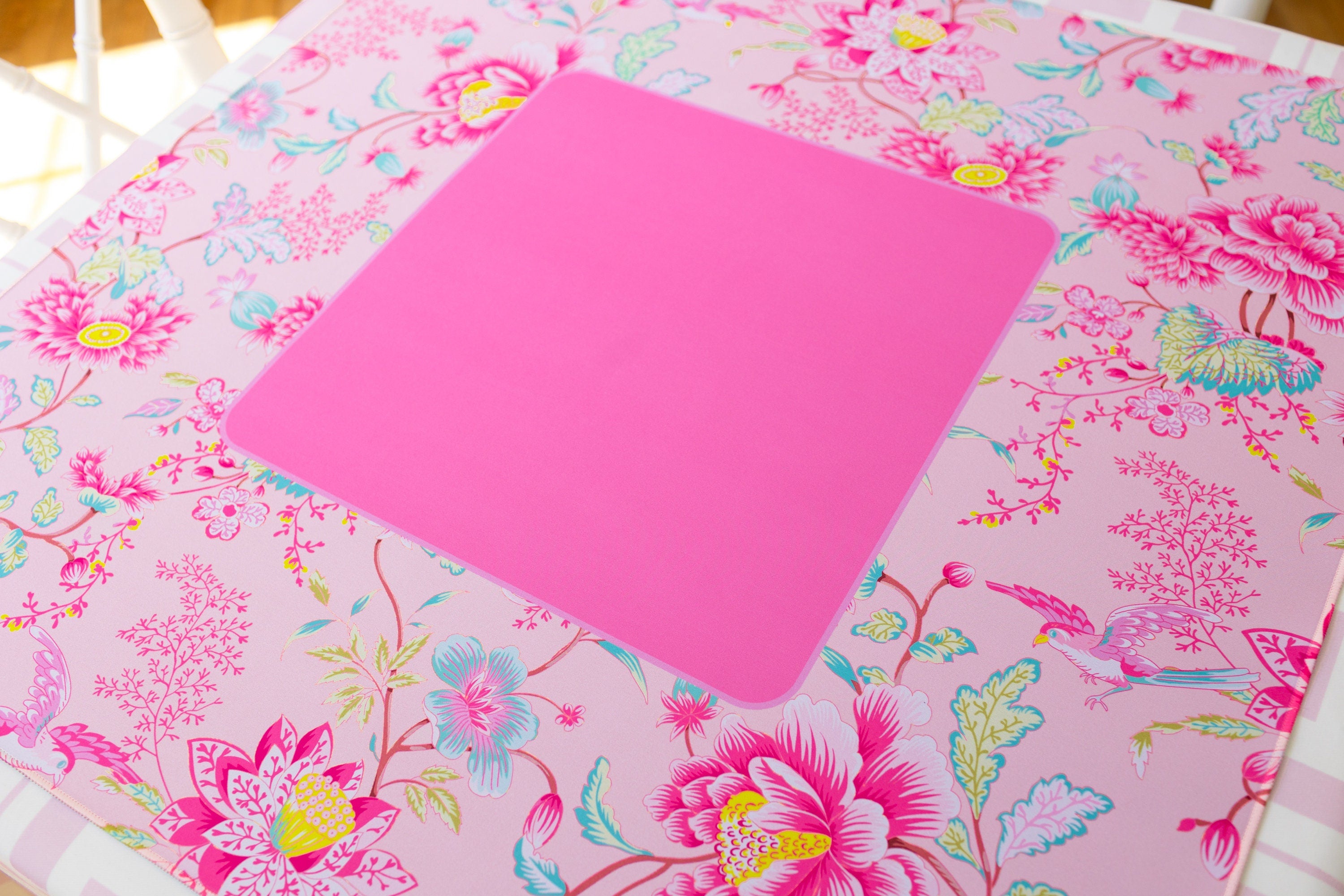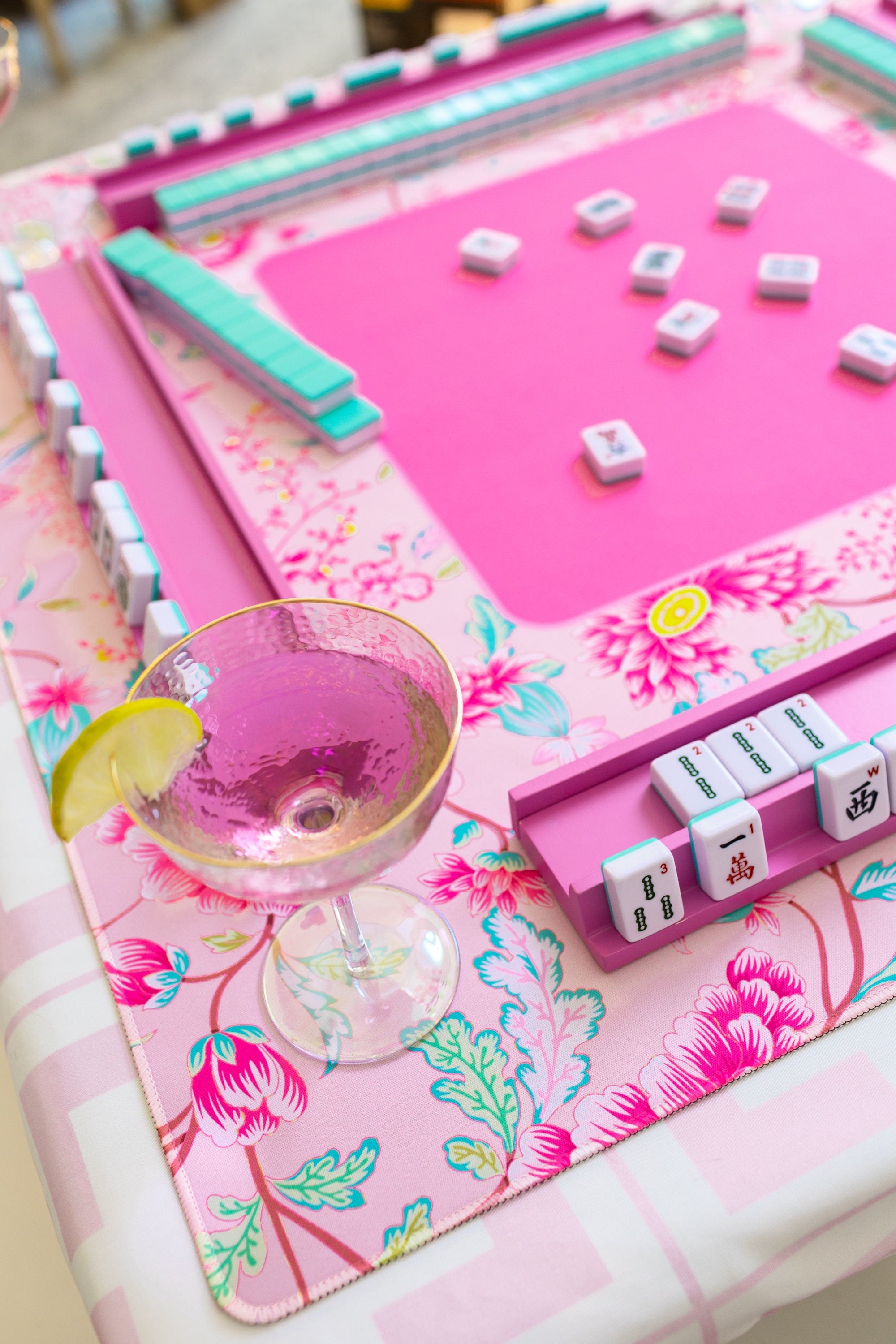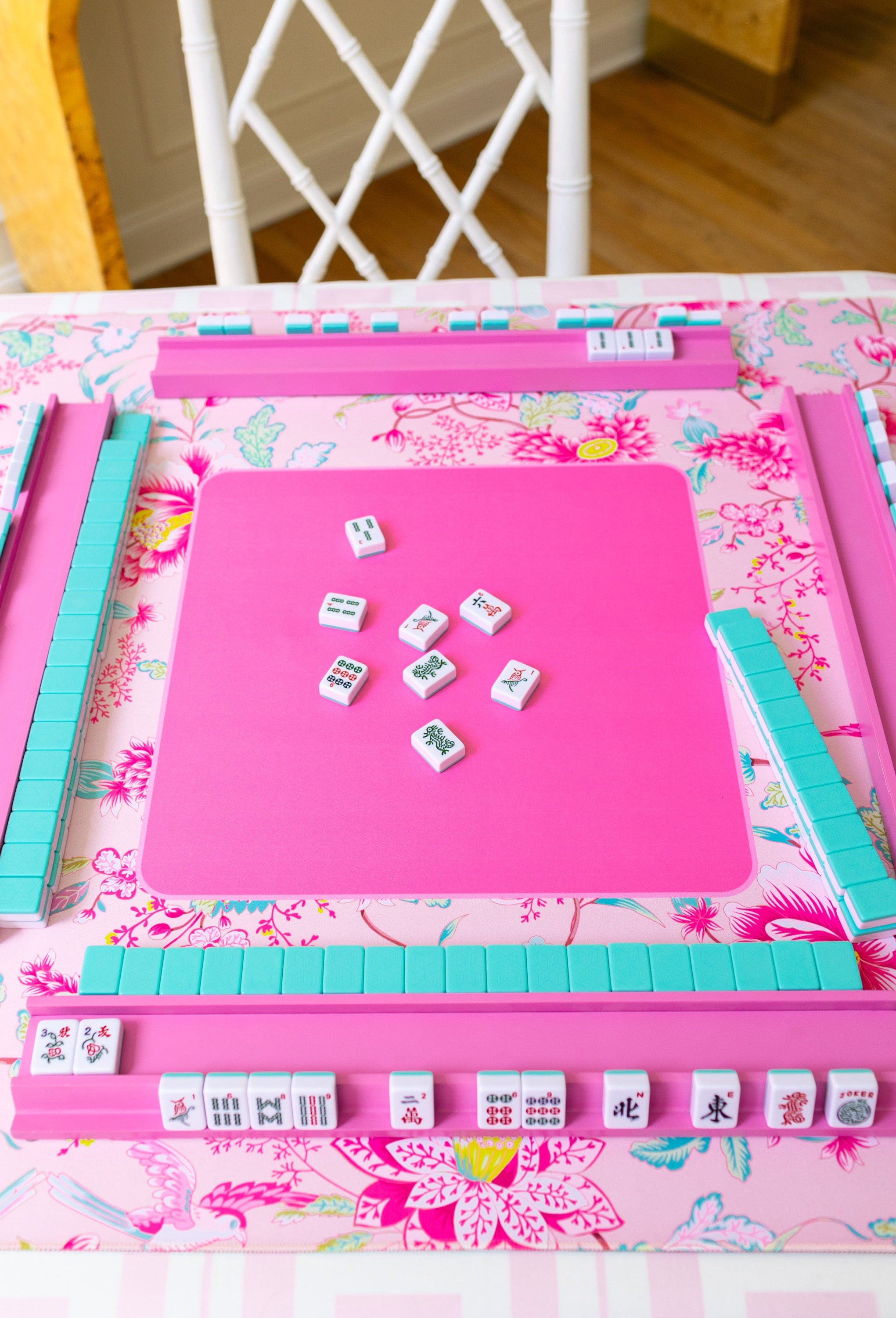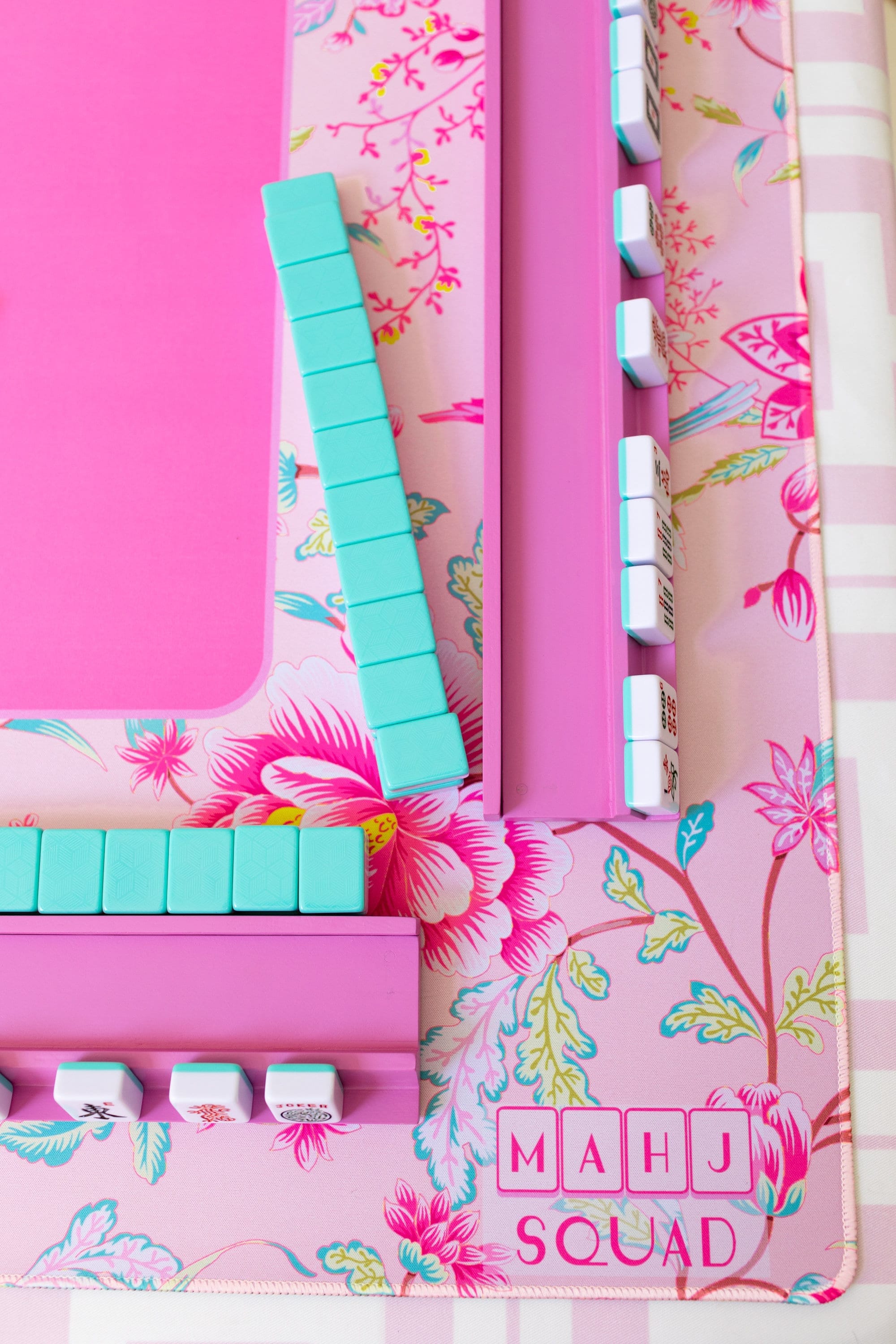 Ready to ship. This Pink Chinoiserie Mahjong mat is vibrant, fun, summery and ready to ship ASAP! It will brighten up any game and is perfect for a girly girl. The floral and bird motif is classic Chino but also reflects a Chintz pattern. It's both elegant and sassy at the same time. So many different tiles would go with these colors!