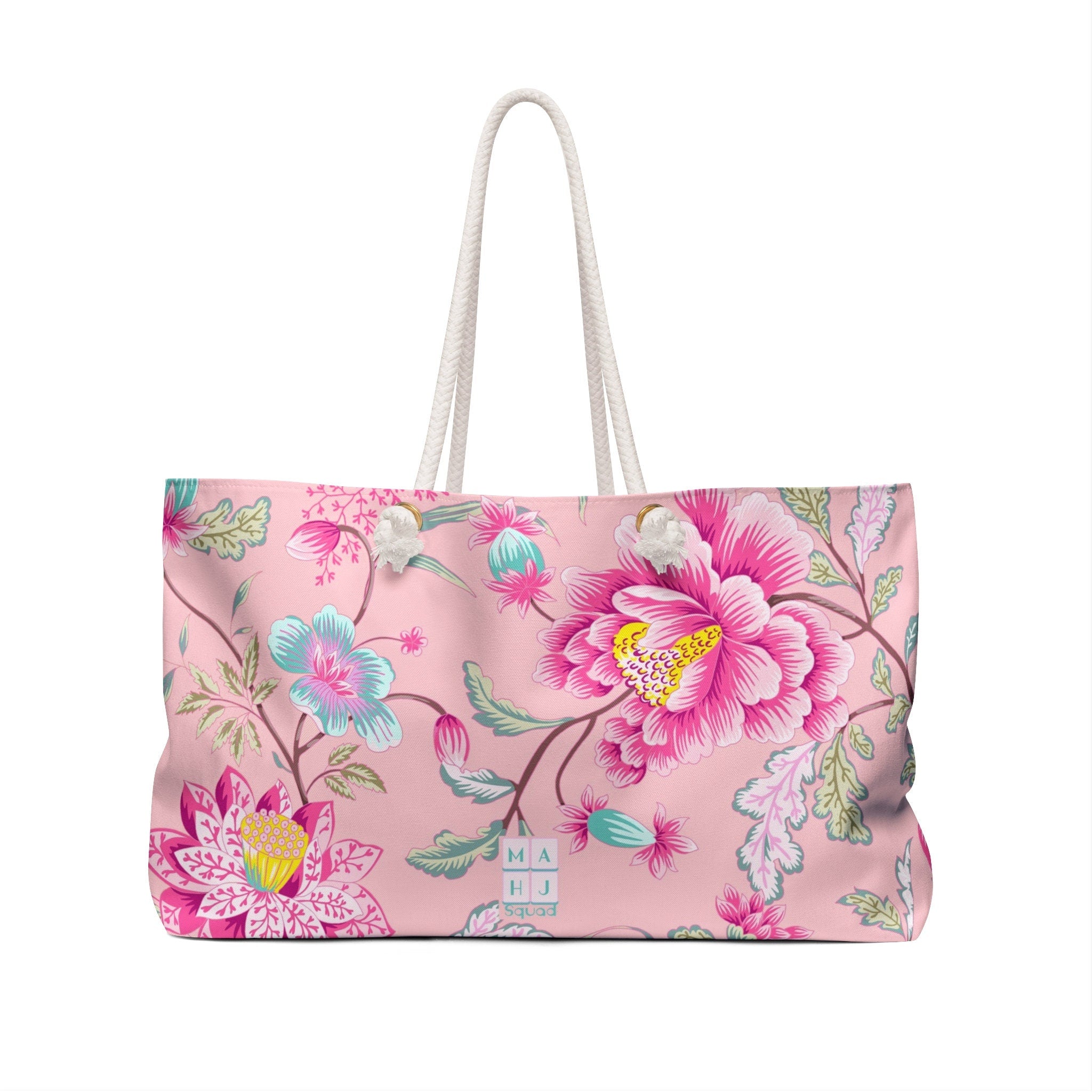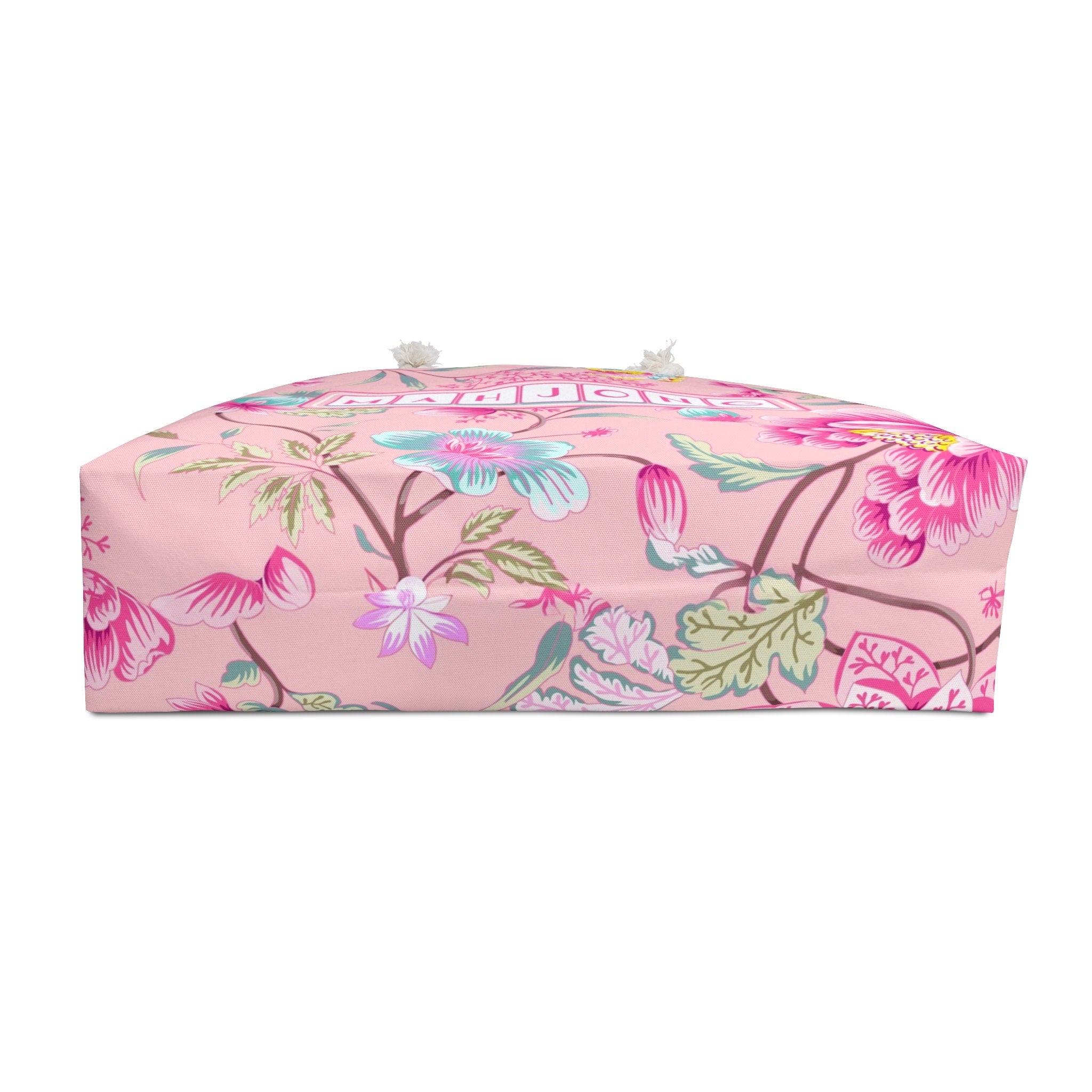 This large tote will carry all your Mahj supplies over to your friends house or to a tournament. The word "Mahjong" is featured on the front in bright pink over a colorful floral Chinoiserie print. It's a great gift as well!