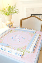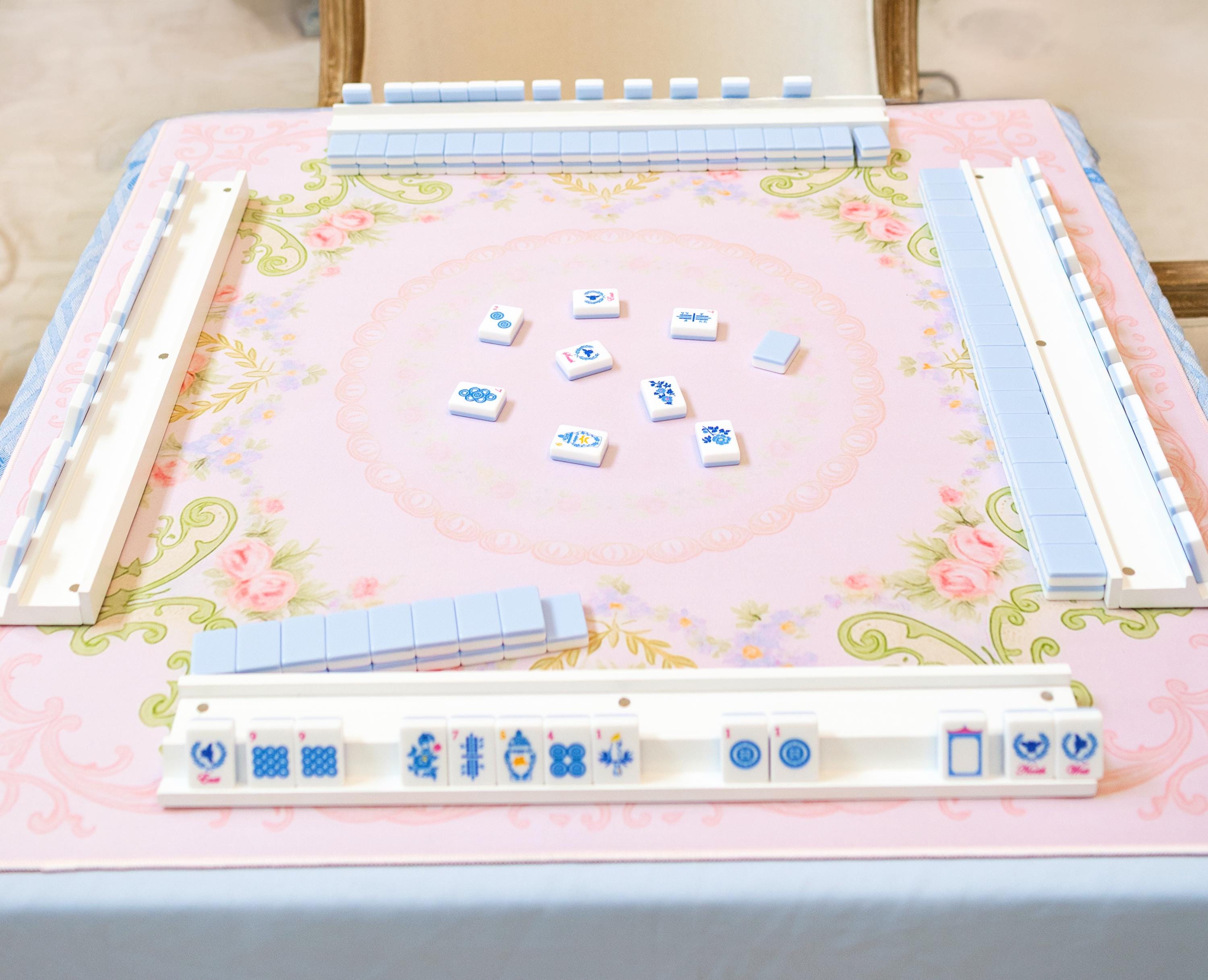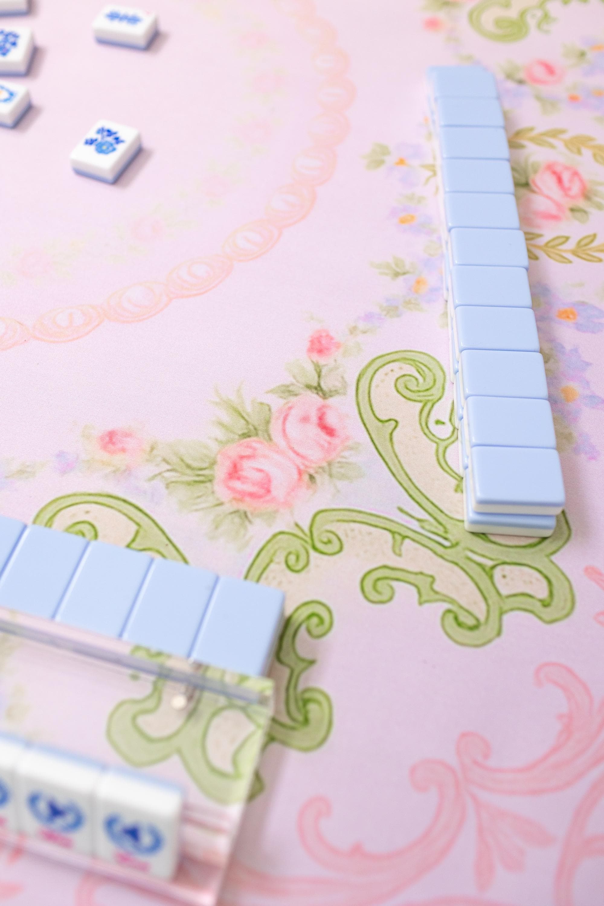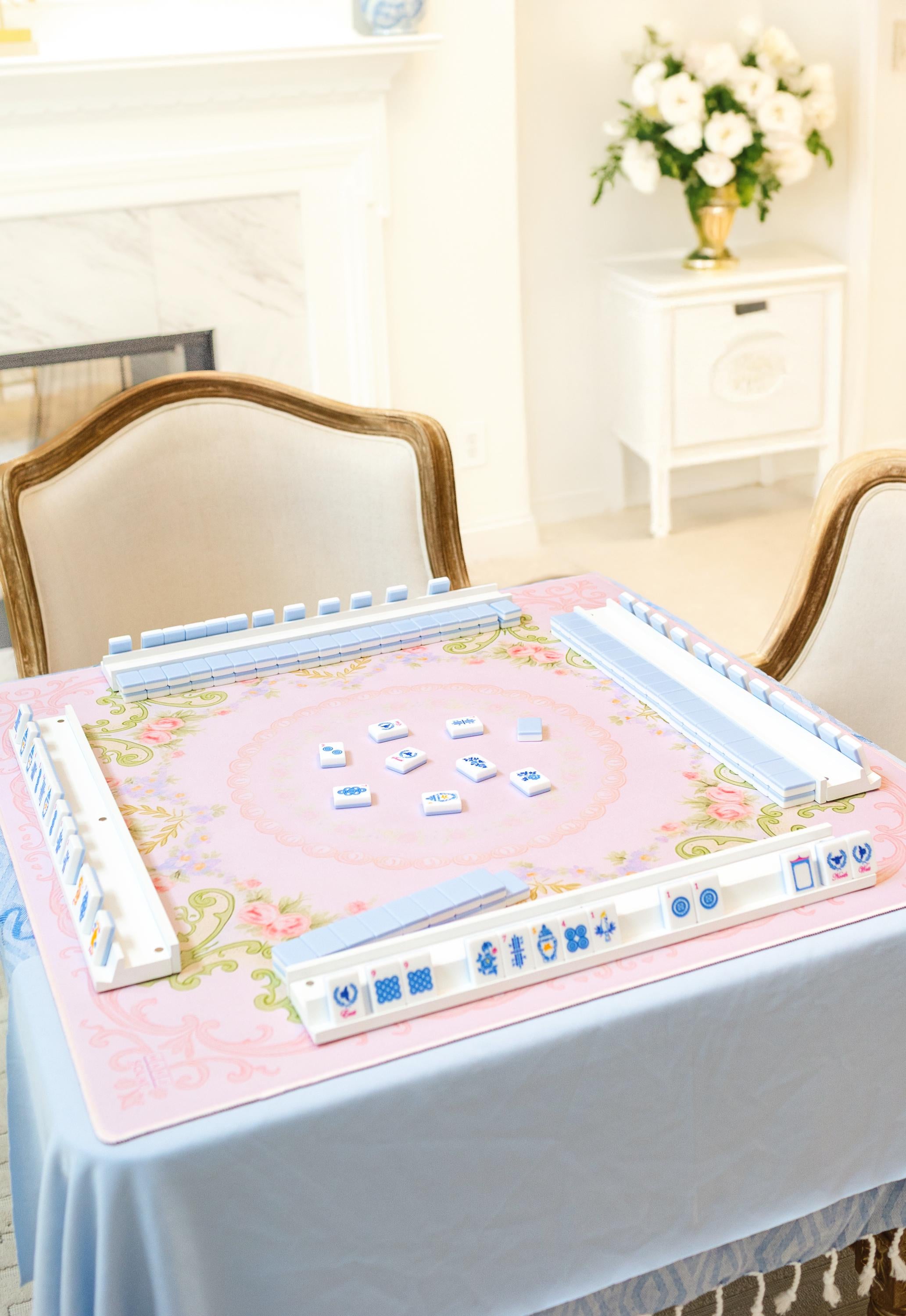Ready to ship. This pink floral Mahjong mat is inspired by vintage China that my mom had random pieces of and I always loved it. It has so many pretty soft colors in the floral pattern, that you can easily match so many tiles with this mat. It is...as they say.."unapologetically feminine."